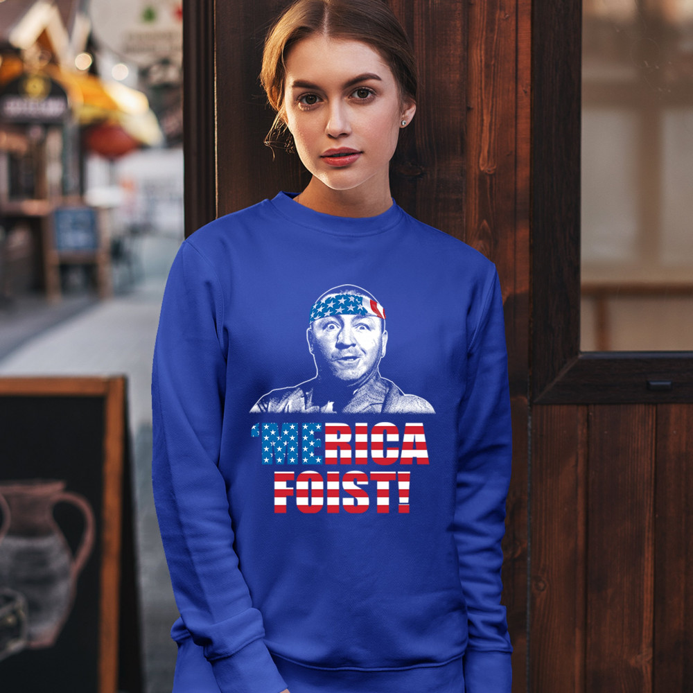 MERICA FOIST sweatshirt patriotic curly howard the three stooges usa crewneck royal blue