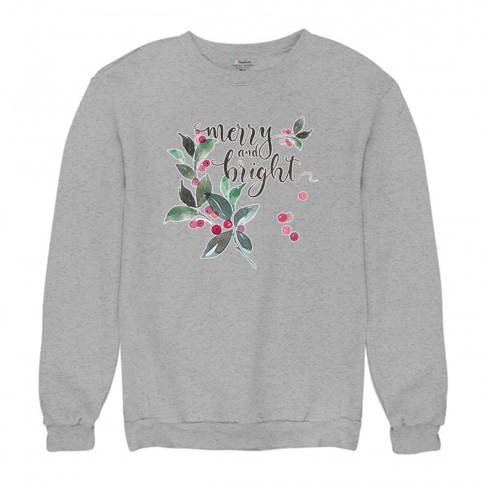 MERRY AND BRIGHT CUTE CHRISTMAS sweatshirt jolly santa clause xmas crewneck gray