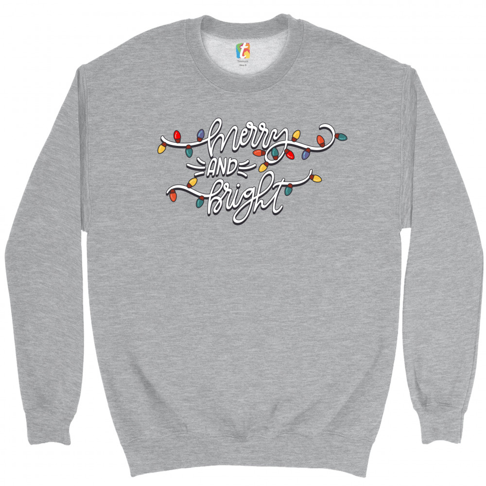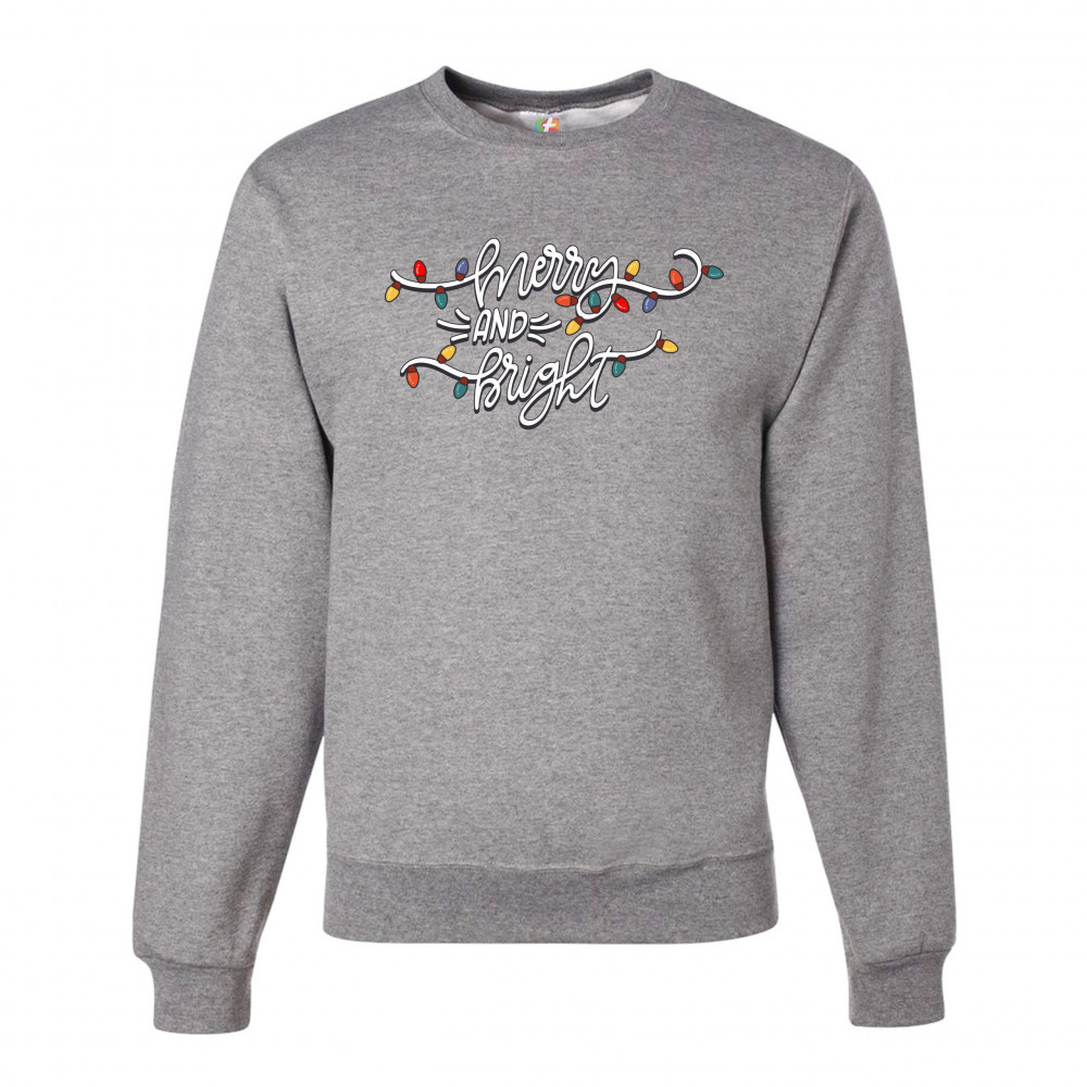 MERRY AND BRIGHT sweatshirt christmas eve holiday spirit festive crewneck gray