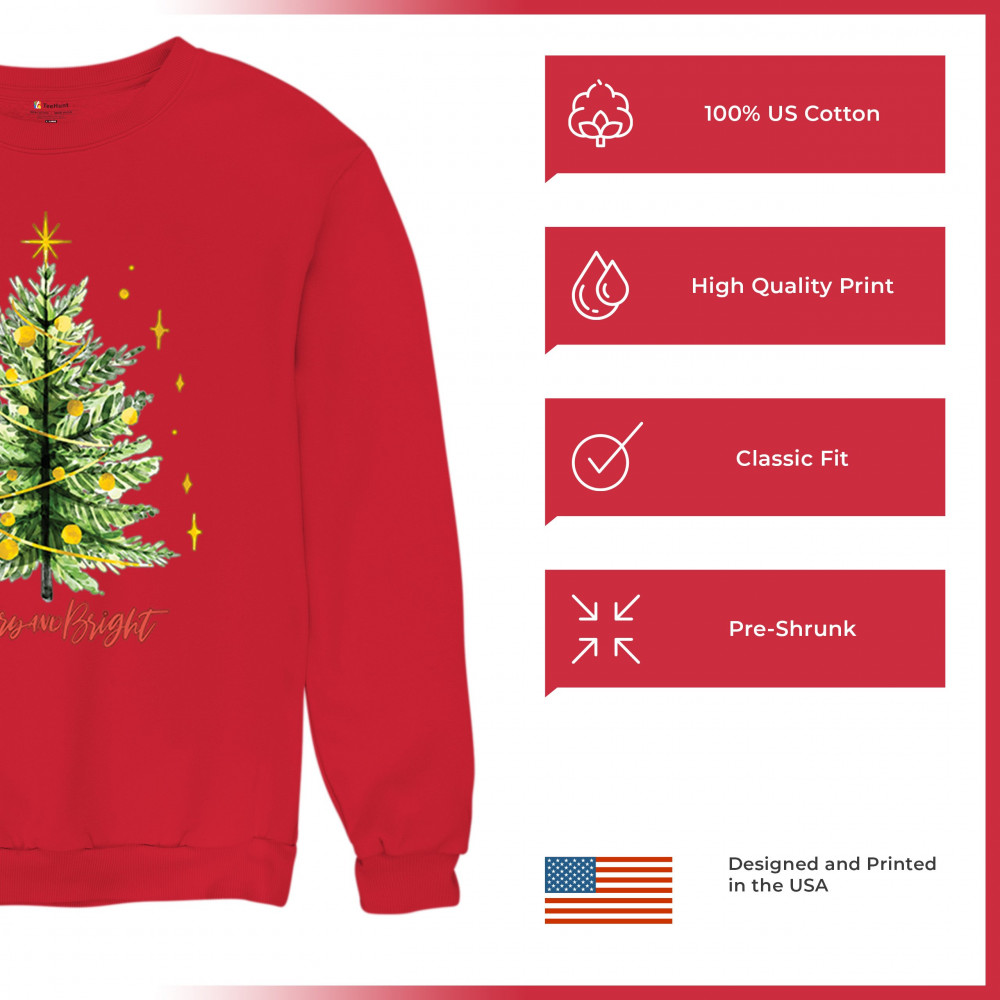 Festive “Merry and Bright†shirt featuring a joyful Christmas tree. Perfect for holiday gatherings, office parties, or Secret Santa gifts.