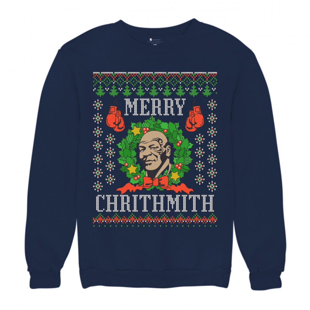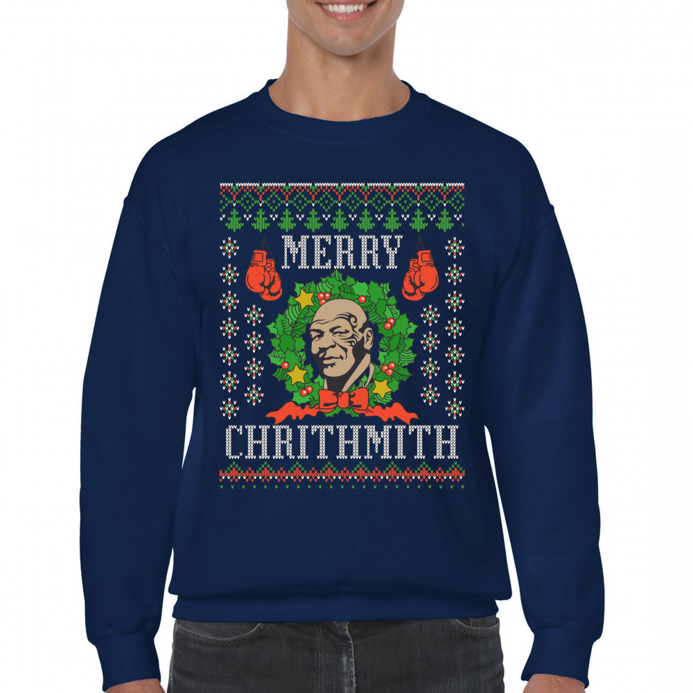 MERRY CHRITHMITH sweatshirt mike tyson ugly sweater funny christmas crewneck navy blue