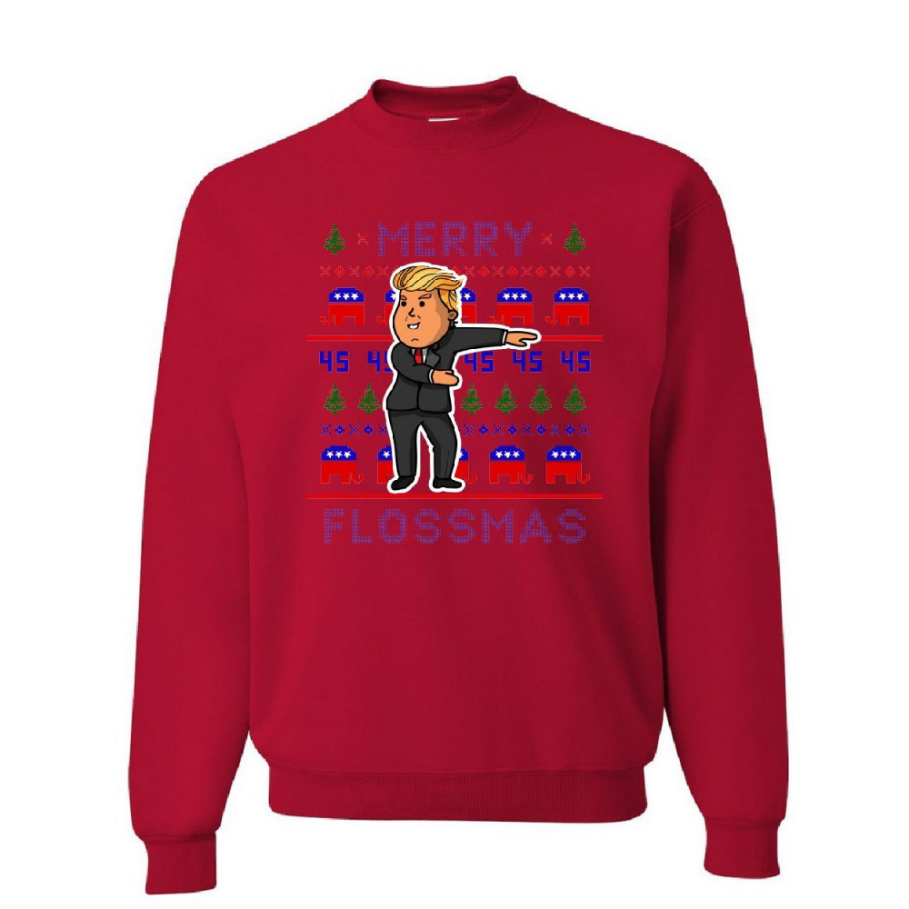 MERRY FLOSSMASS merry flossmas sweatshirt christmas xmas ugly sweater trump floss sweater red