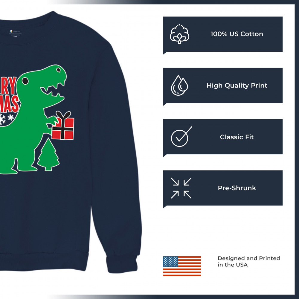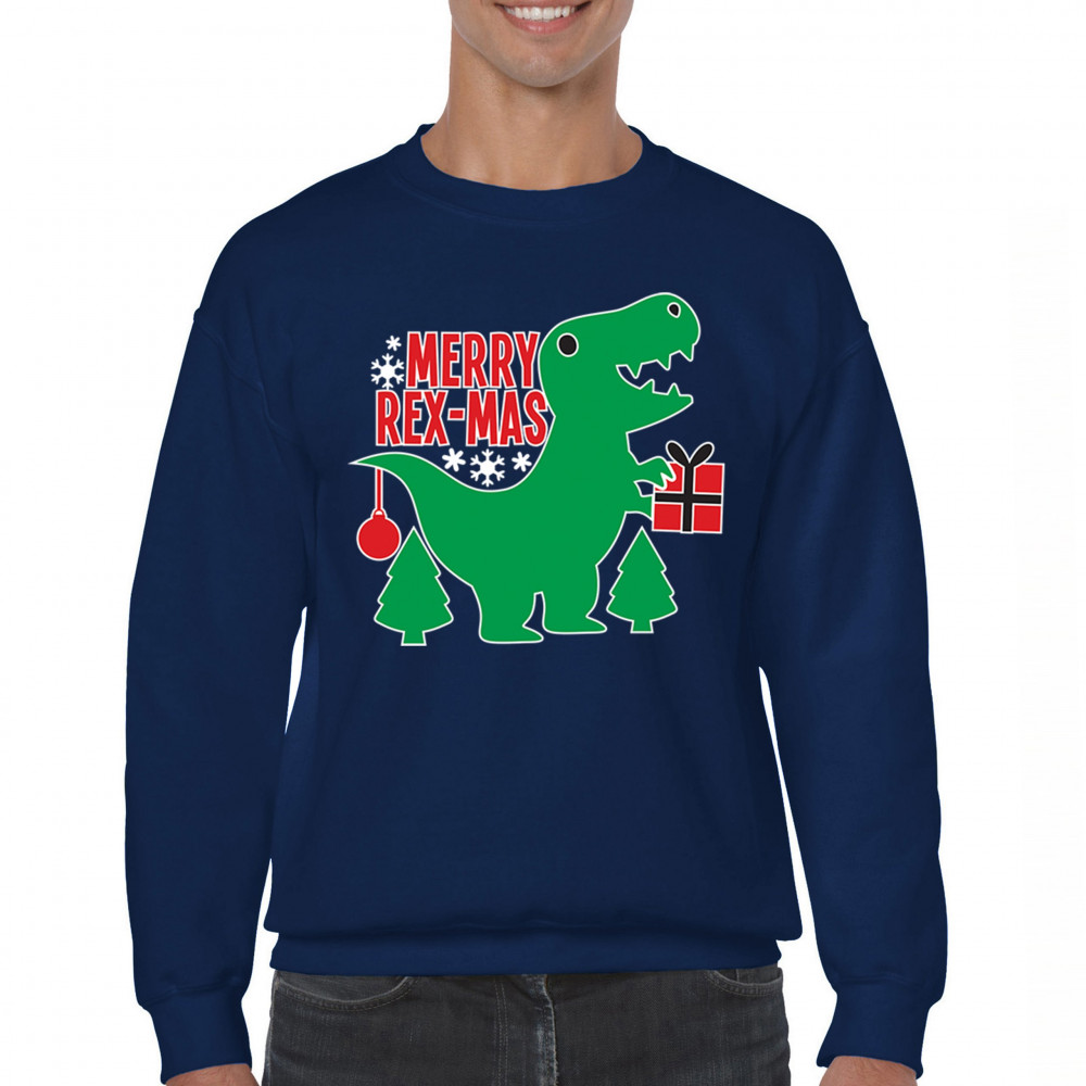 Merry Rex-Mas dinosaur Christmas design with a cute T-Rex, gift, and festive holiday details. Perfect for fun family celebrations and cheerful winter style.