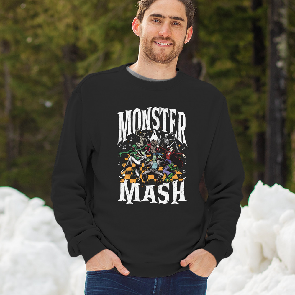 Monster Mash design with creepy costume, pumpkin head, and scary jack o lantern vibes. Perfect for Halloween night, October 31, and parties.