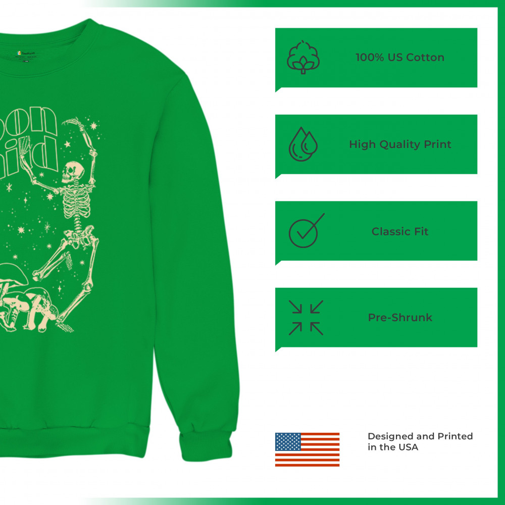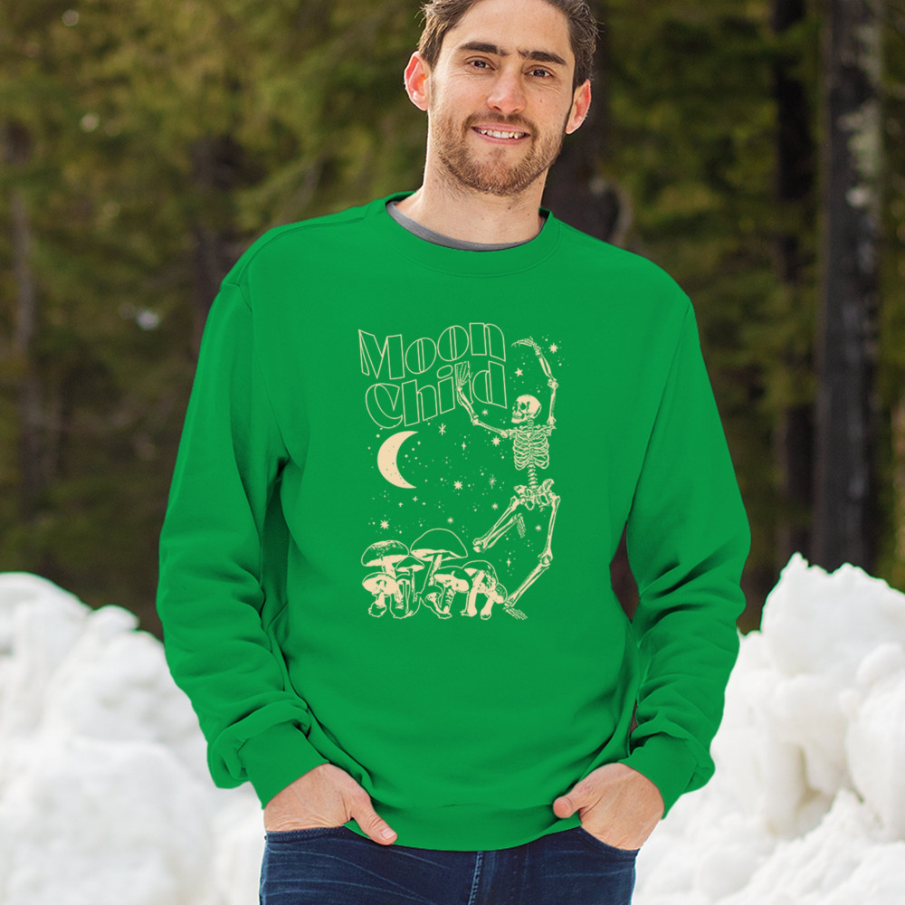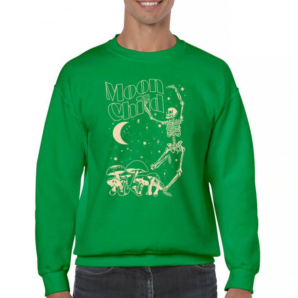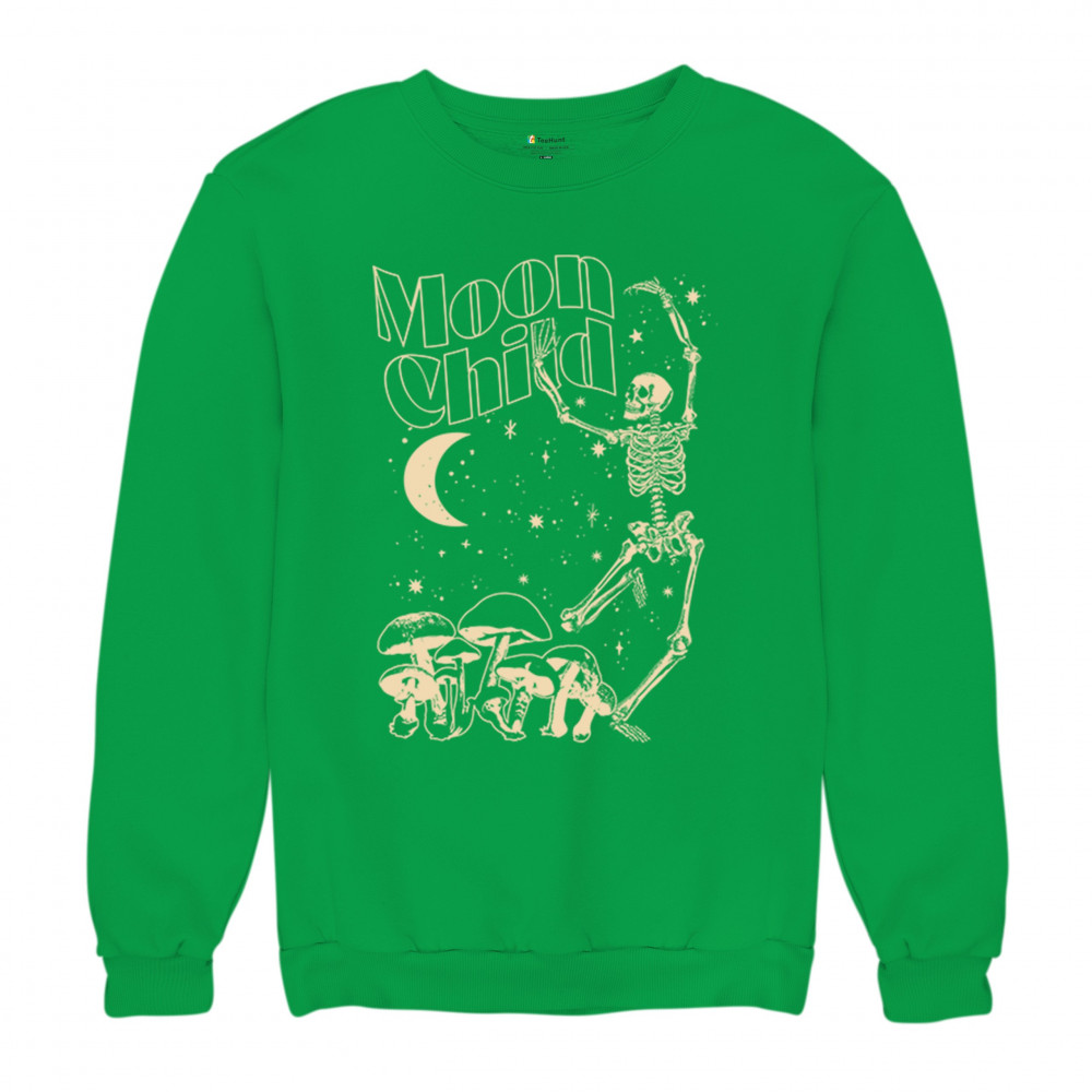 Mystical “Moon Child†design with skeleton, mushrooms, stars, and moon. Retro celestial vibes for dreamers, witches, and free spirits.