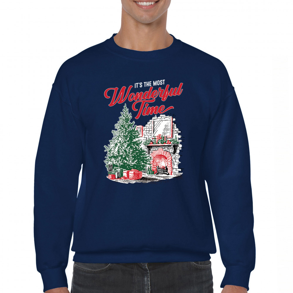 MOST WONDERFUL TIME crewneck sweatshirt christmas tree merry xmas santa claus navy blue