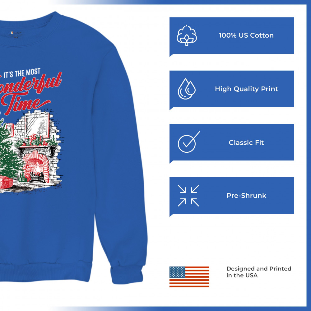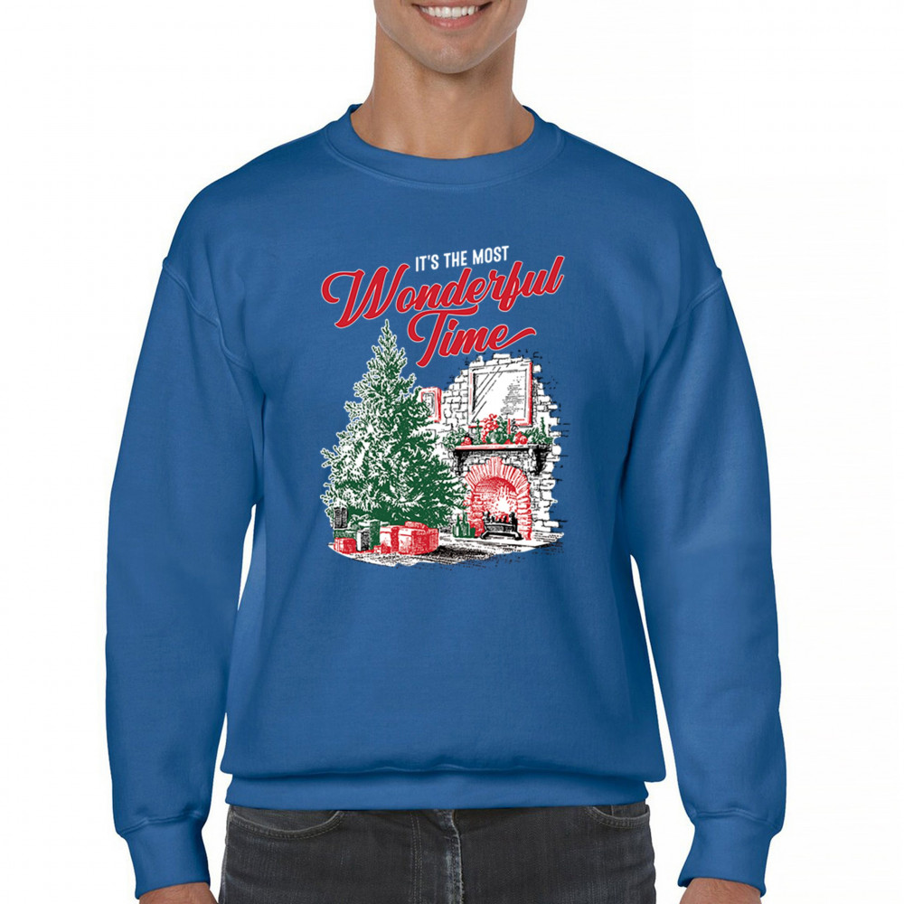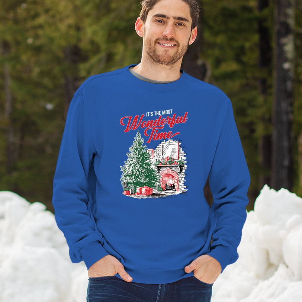 MOST WONDERFUL TIME crewneck sweatshirt christmas tree merry xmas santa claus royal blue
