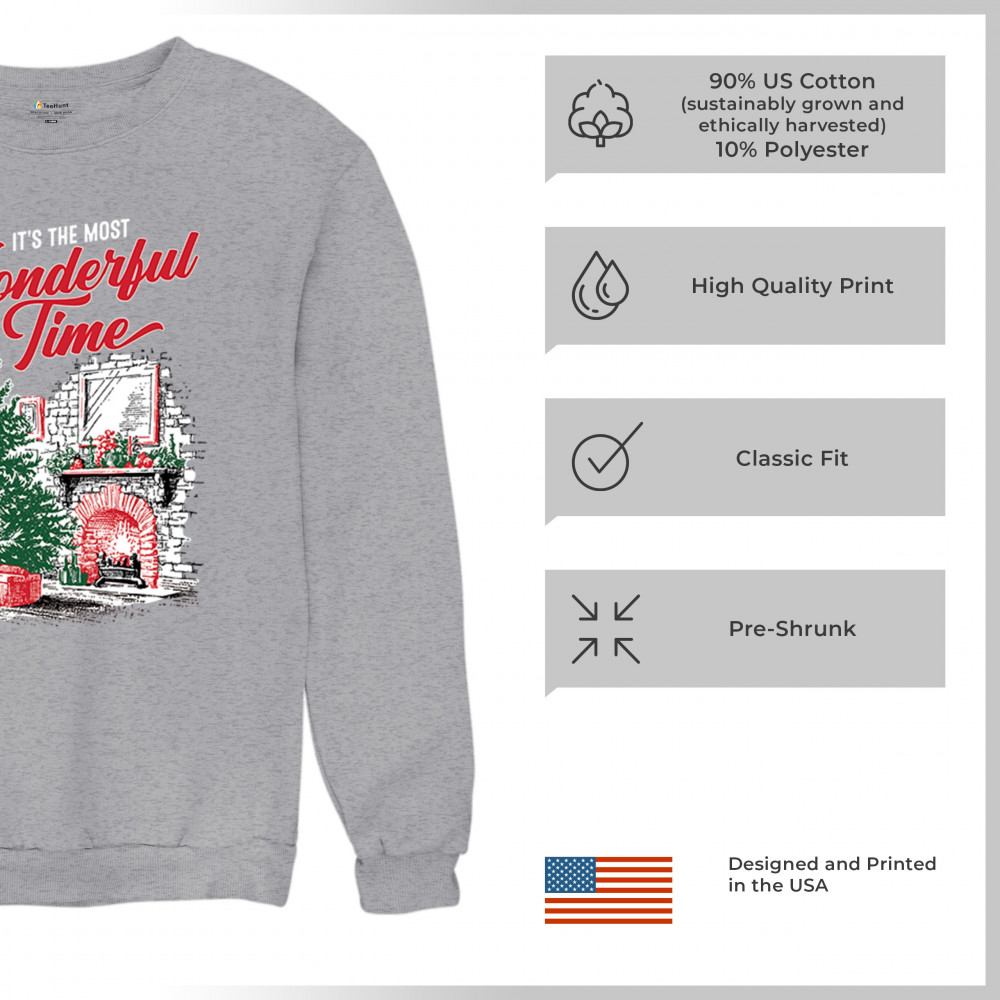 Make your holidays brighter with this “Most Wonderful Time†Christmas design, featuring a glowing fireplace, festive living room, and decorated Christmas tree. This cozy Christmas shirt combines holiday home decor style with classic Merry Xmas charm. Perfect for those who love Santa Claus, Rudolph, reindeer, Let It Snow vibes, and cheerful holiday fashion.