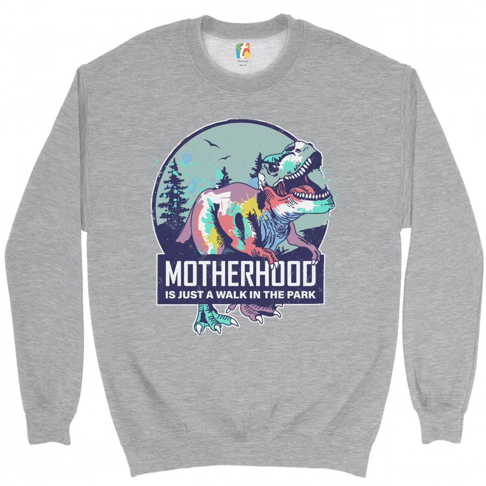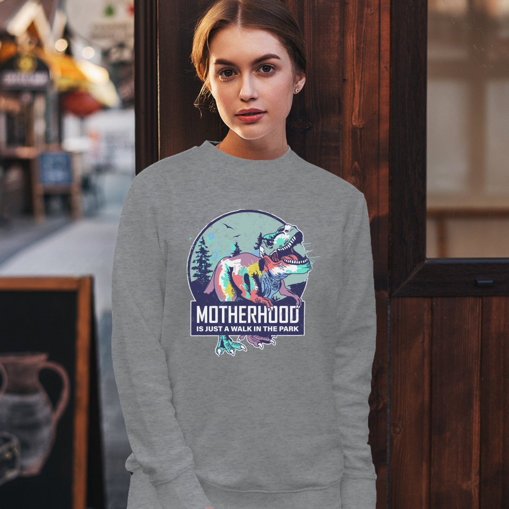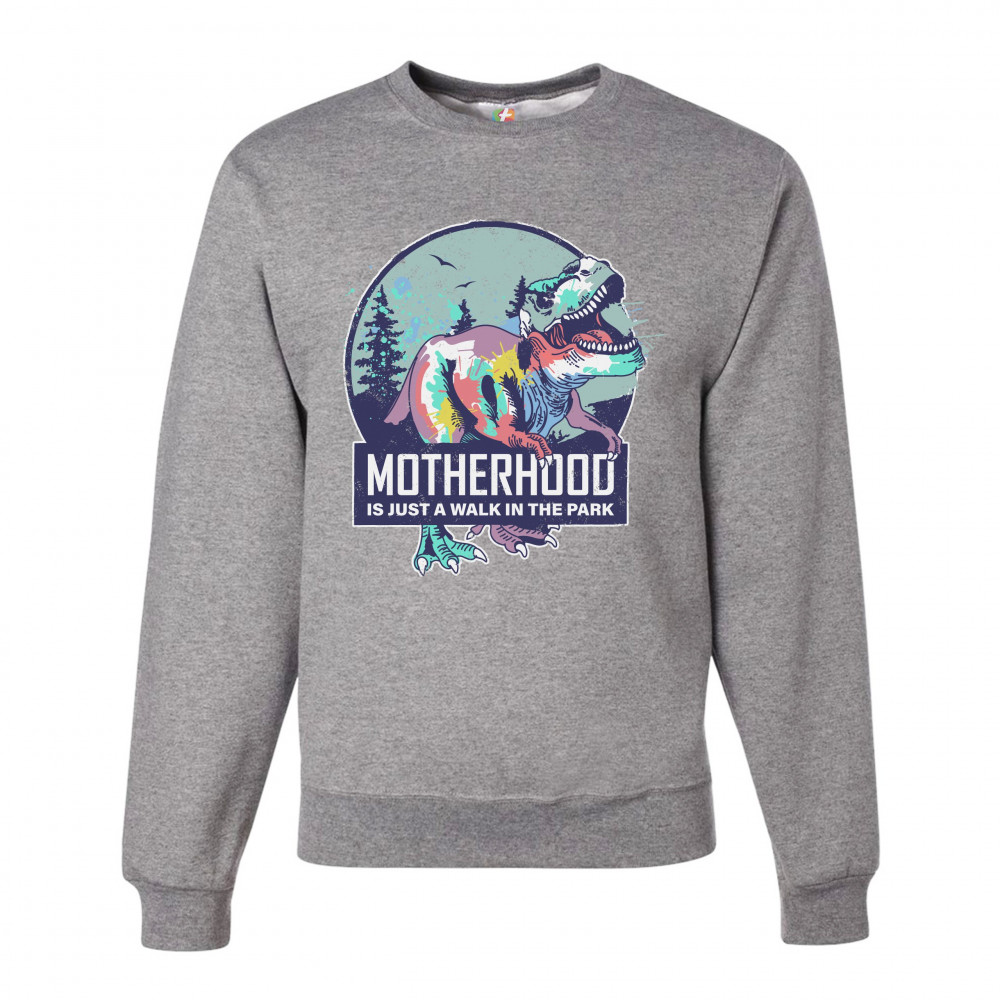 MOTHERHOOD IS JUST A WALK IN THE PARK sweatshirt t-rex mother's day crewneck gray