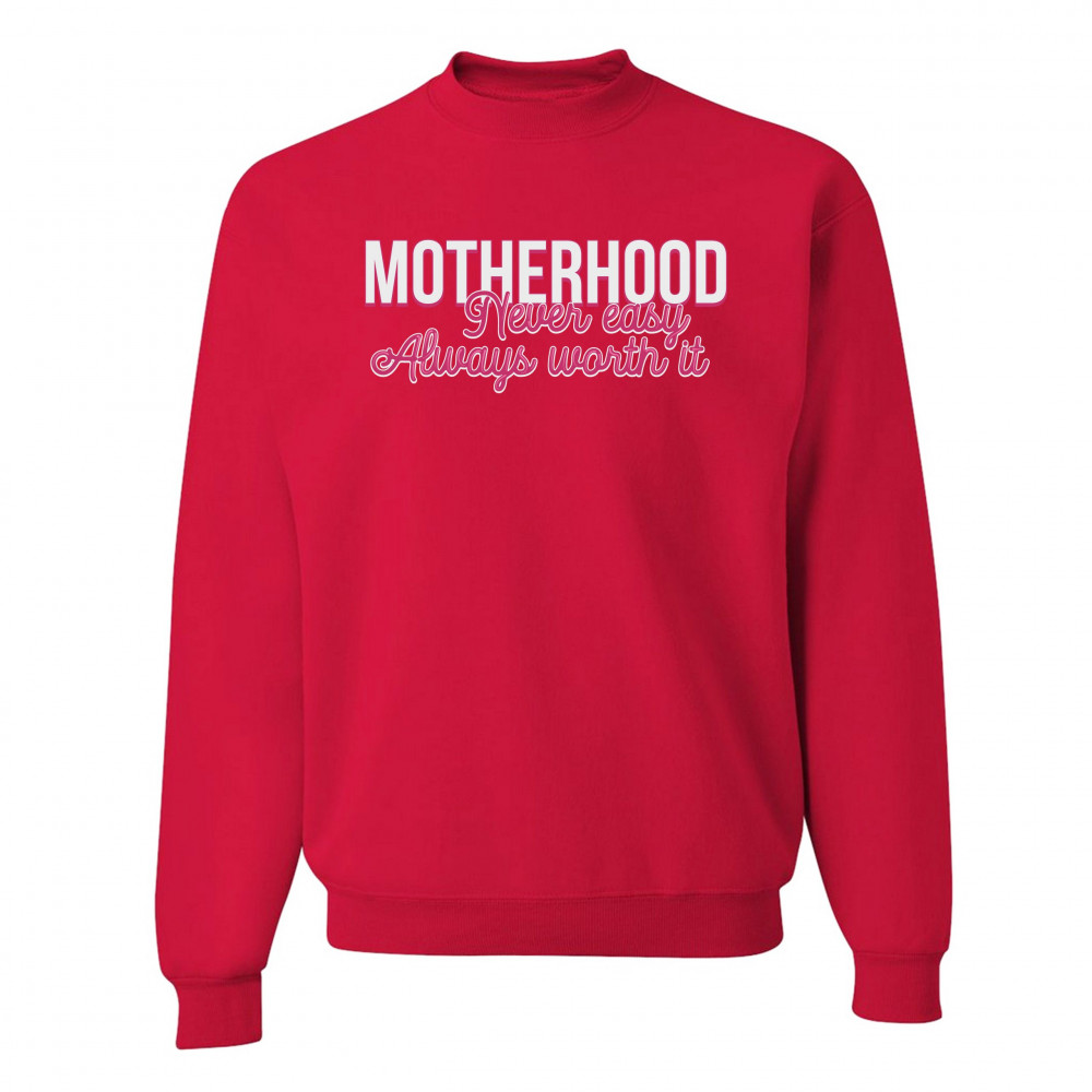 MOTHERHOOD NEVER EASY ALWAYS WORTH IT sweatshirt mother's day mom crewneck red