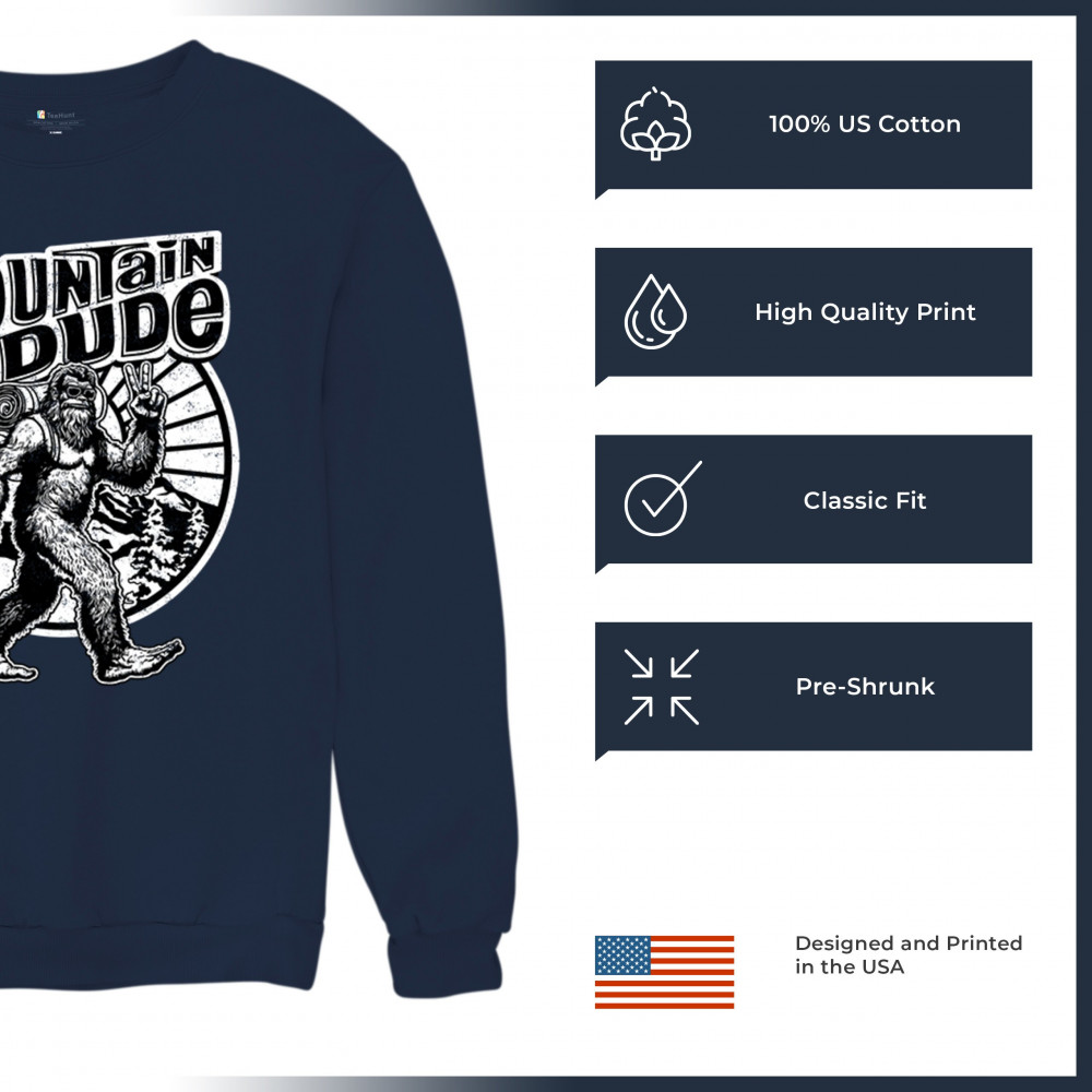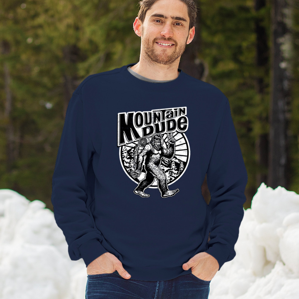Celebrate outdoor adventures with the "Mountain Dude" design, featuring Sasquatch and mountain scenery. Perfect for hikers, campers, and Bigfoot fans.