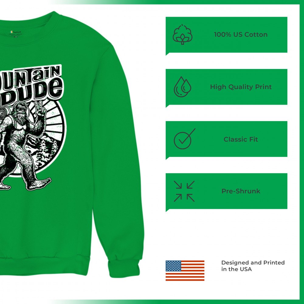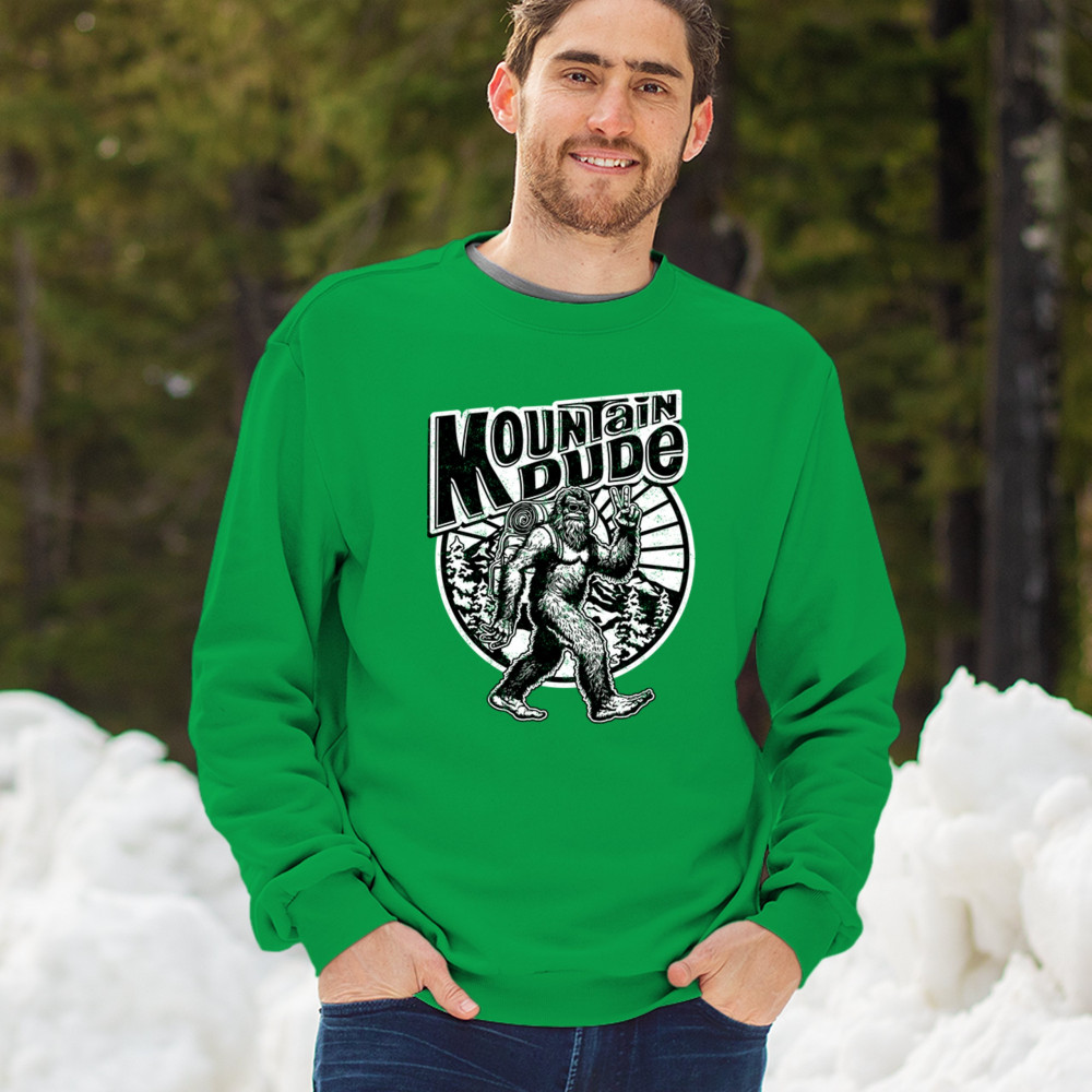 Celebrate outdoor adventures with the "Mountain Dude" design, featuring Sasquatch and mountain scenery. Perfect for hikers, campers, and Bigfoot fans.