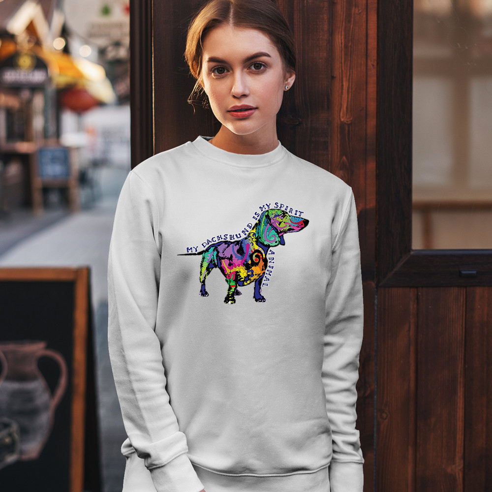 MY DACHSHUND IS MY SPIRIT ANIMAL sweatshirt cute puppy dog lover crewneck white