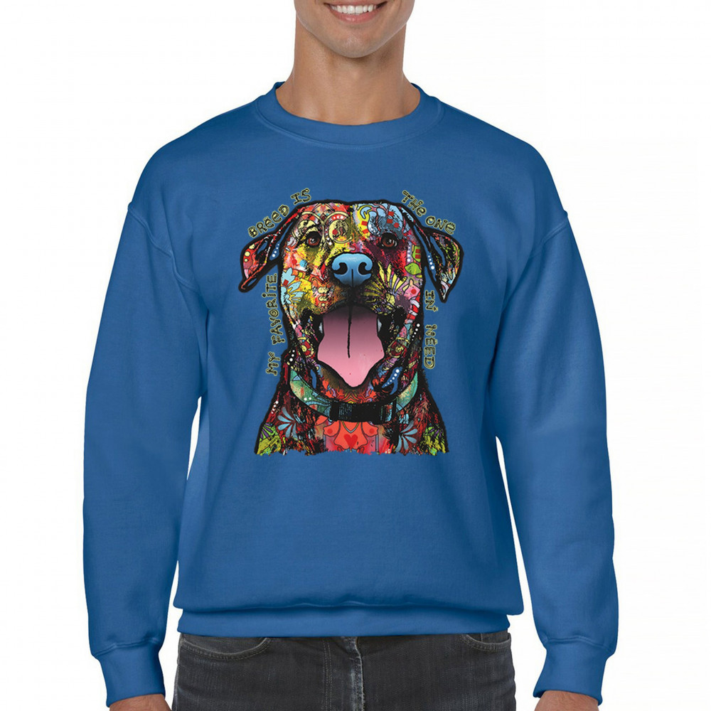 MY FAVORITE BREED IS THE ONE IN NEED sweatshirt dean russo neon dog crewneck royal blue