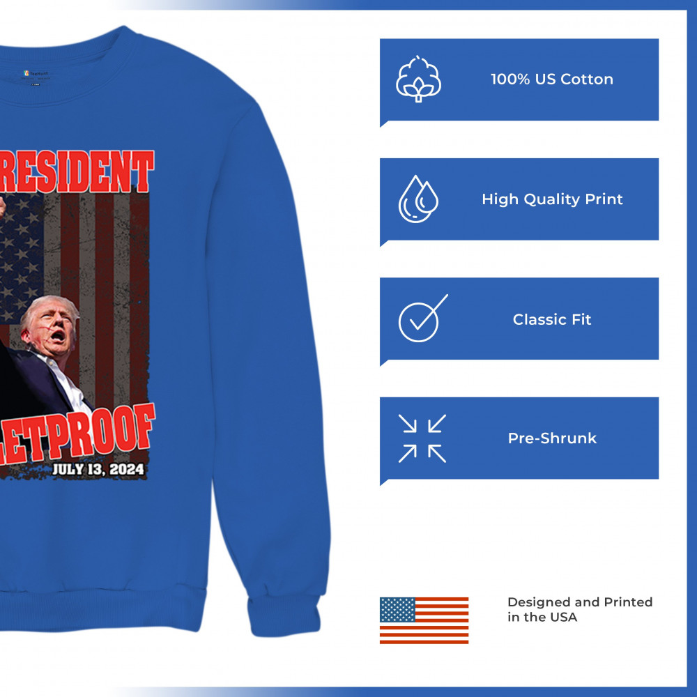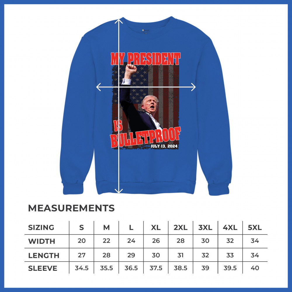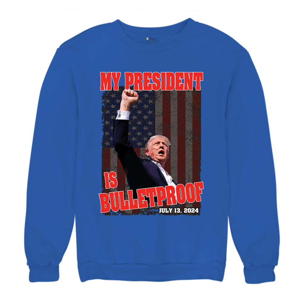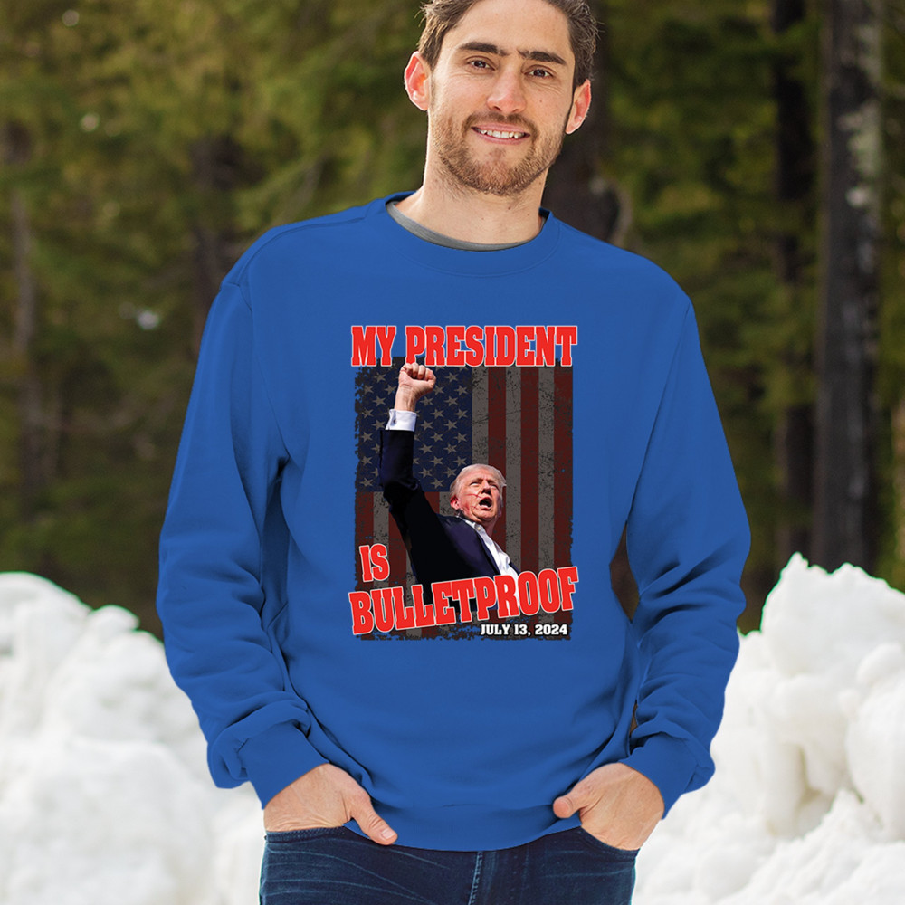 Support Trump with our "My President is Bulletproof" design, perfect for rallies and everyday wear. Show your patriotic pride and conservative values.