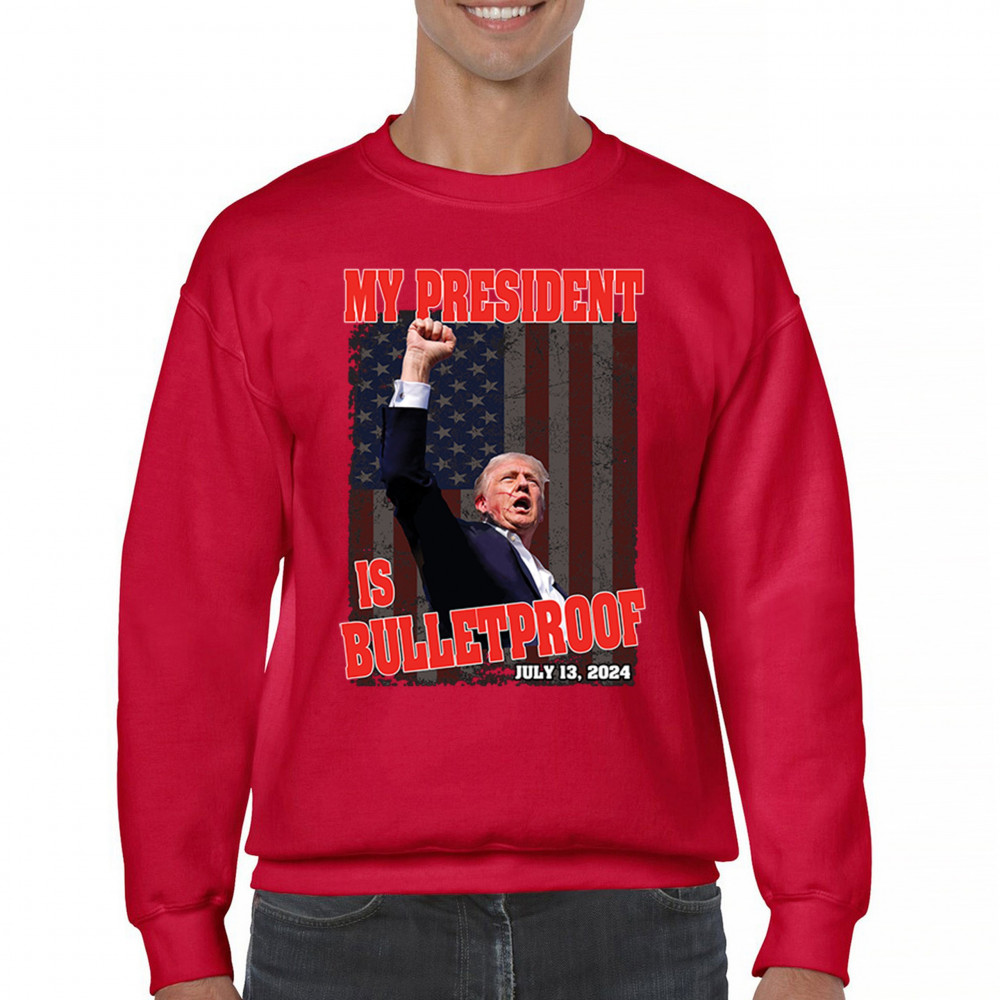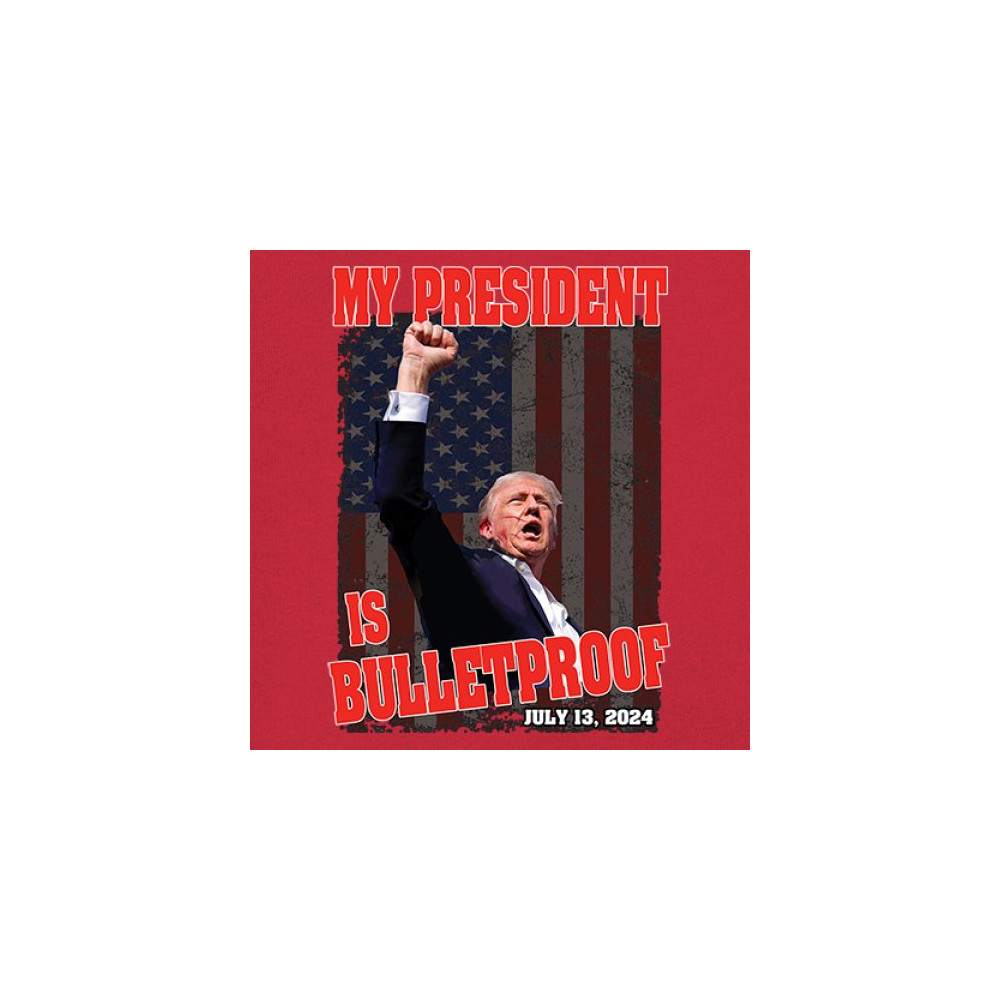 Support Trump with our "My President is Bulletproof" design, perfect for rallies and everyday wear. Show your patriotic pride and conservative values.