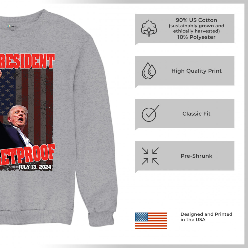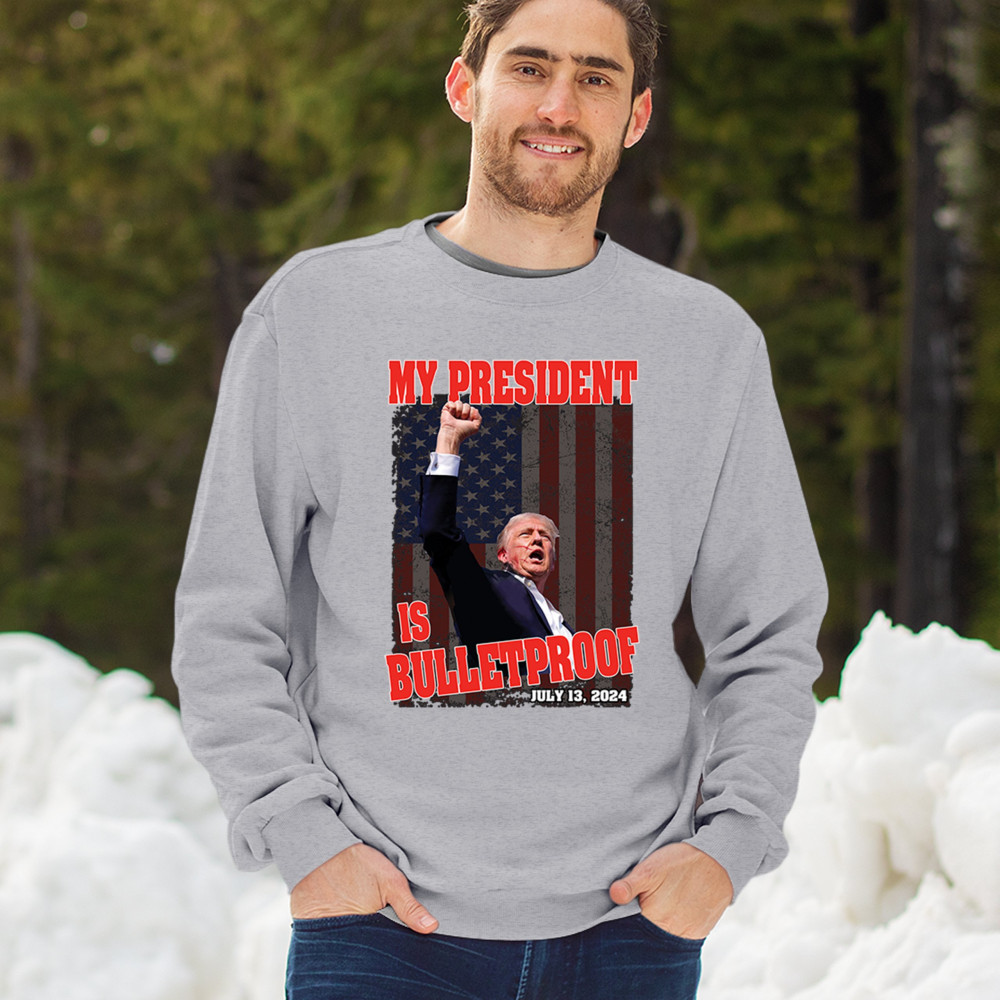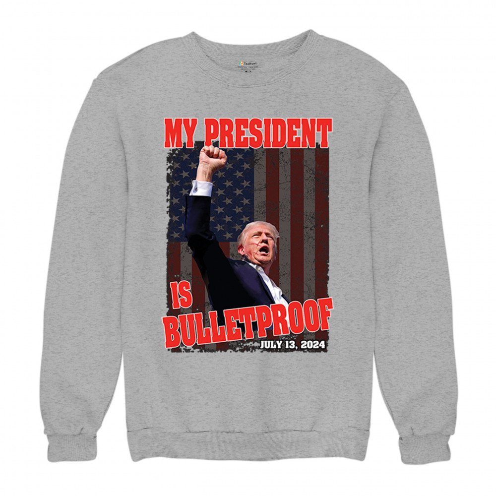 Support Trump with our "My President is Bulletproof" design, perfect for rallies and everyday wear. Show your patriotic pride and conservative values.