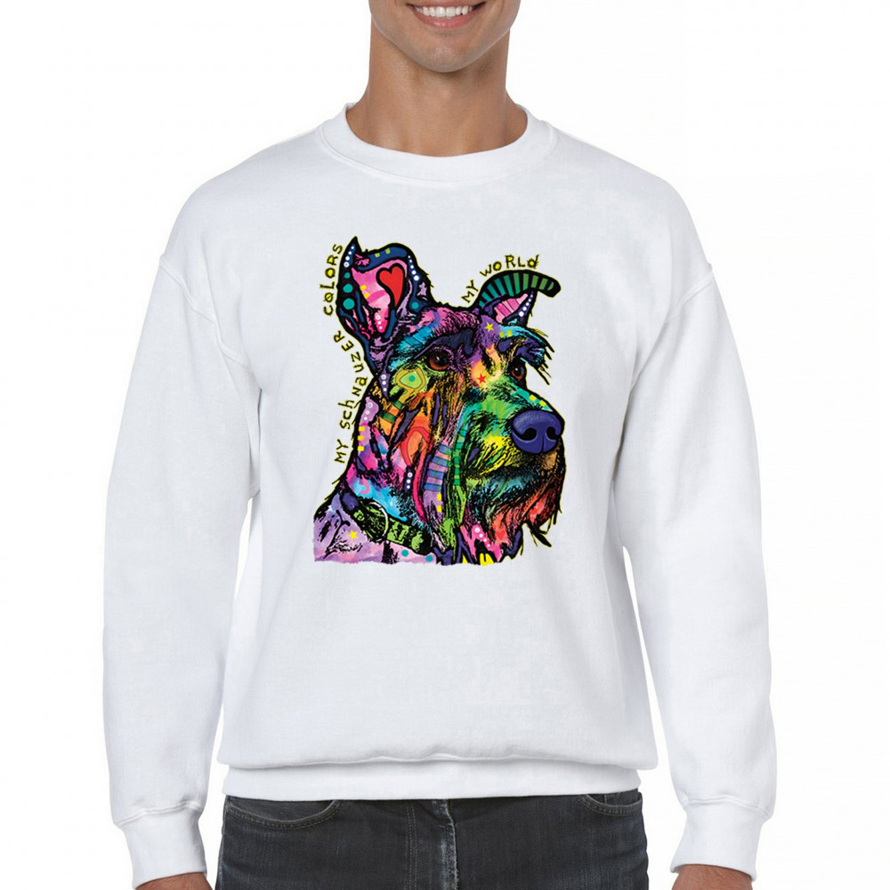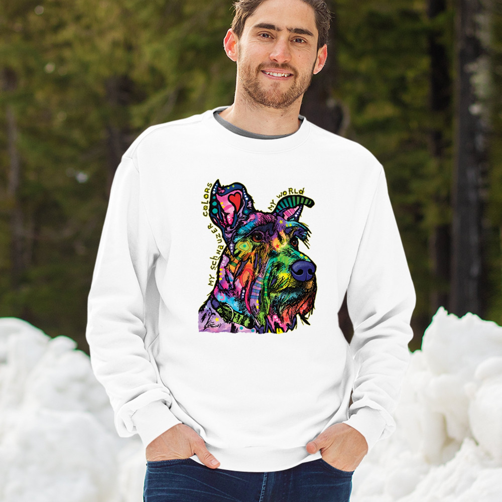 MY SCHNAUZER COLORS MY WORLD sweatshirt dean russo pet dog mom crewneck white