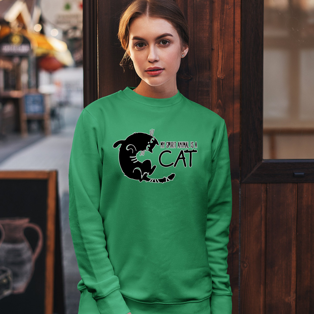 MY SPIRIT ANIMAL IS A CAT sweatshirt cute kitty funny kitten crewneck green