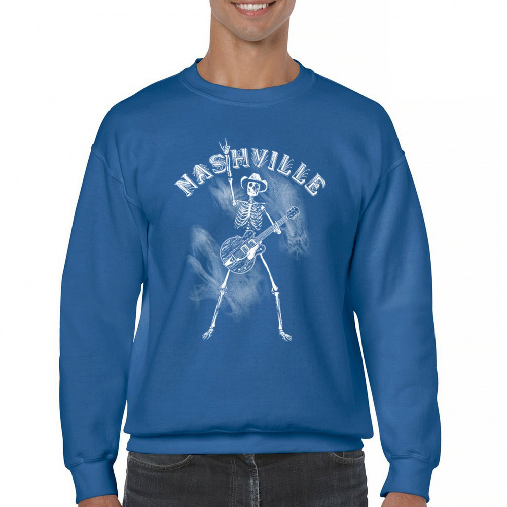 Bold skeleton cowboy design with Nashville grit and country rock vibes. Perfect for fans of music, guitars, and rebel southern style.