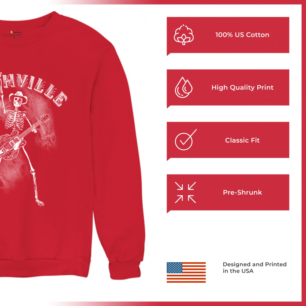 Bold skeleton cowboy design with Nashville grit and country rock vibes. Perfect for fans of music, guitars, and rebel southern style.