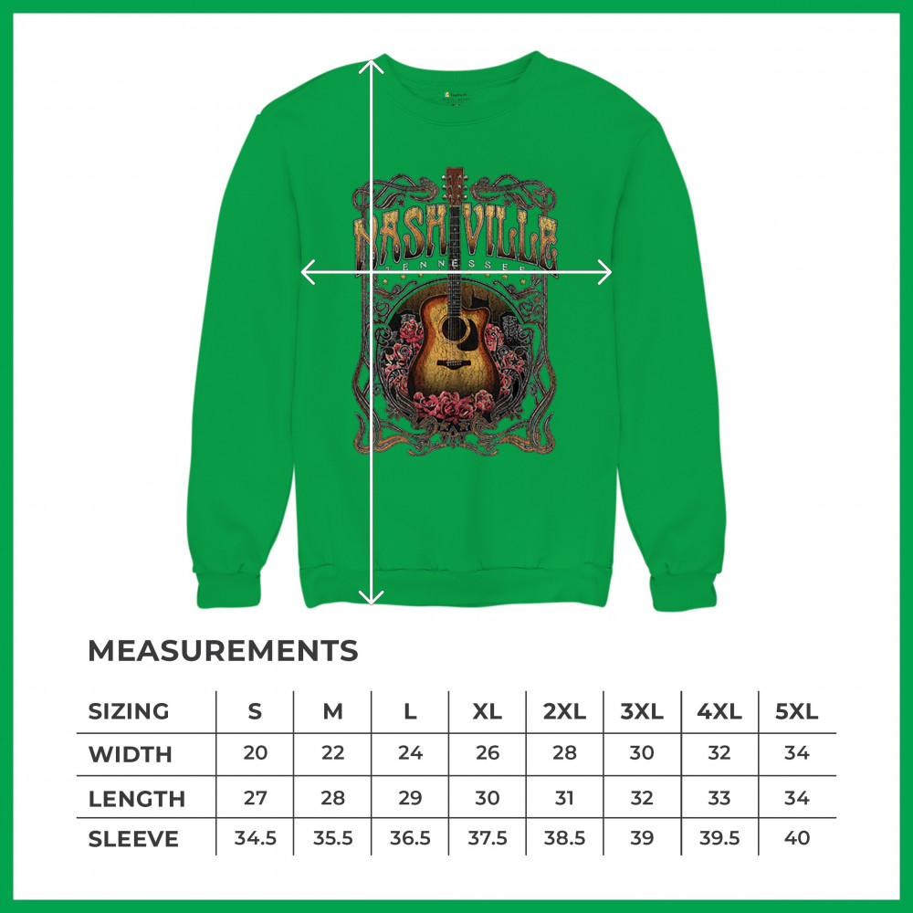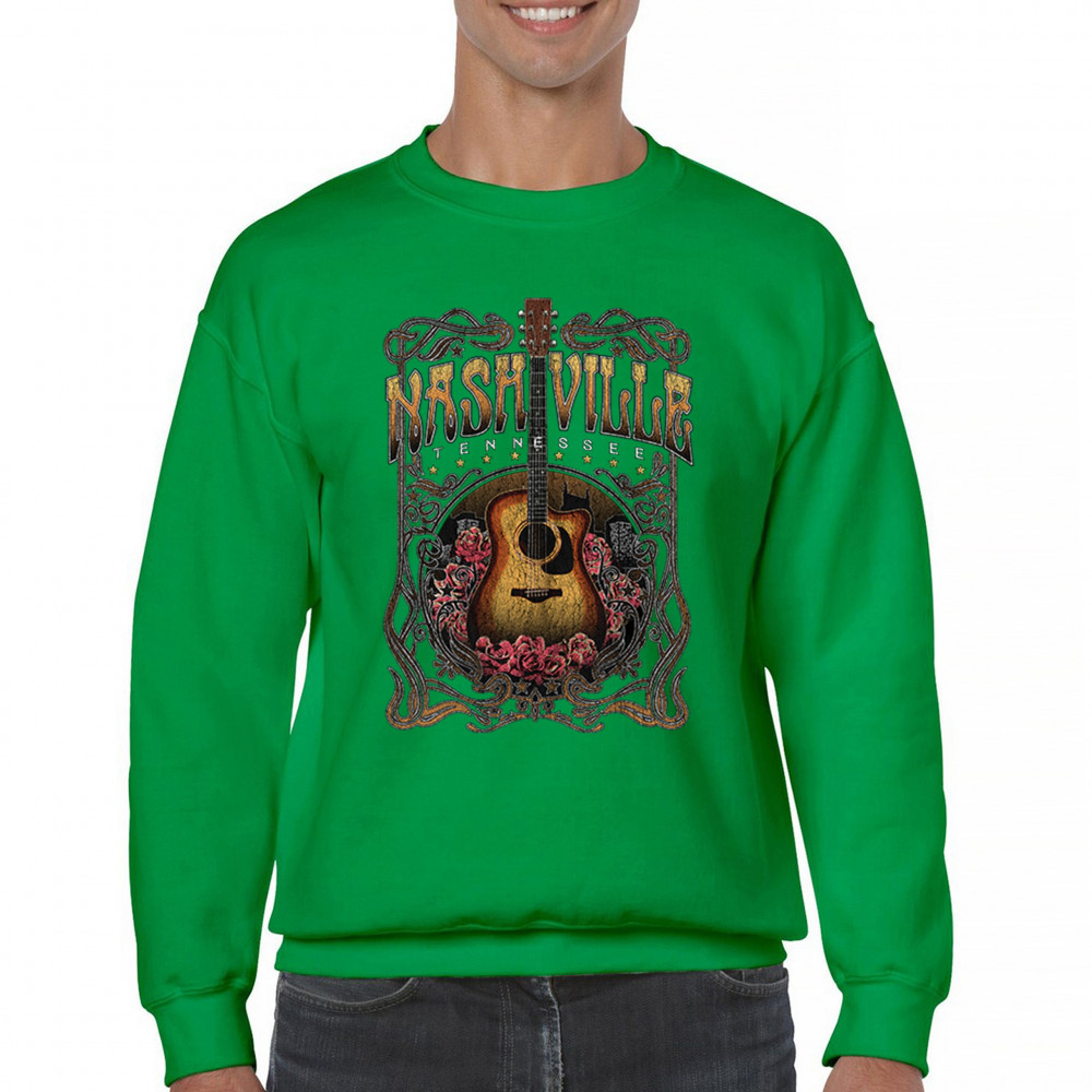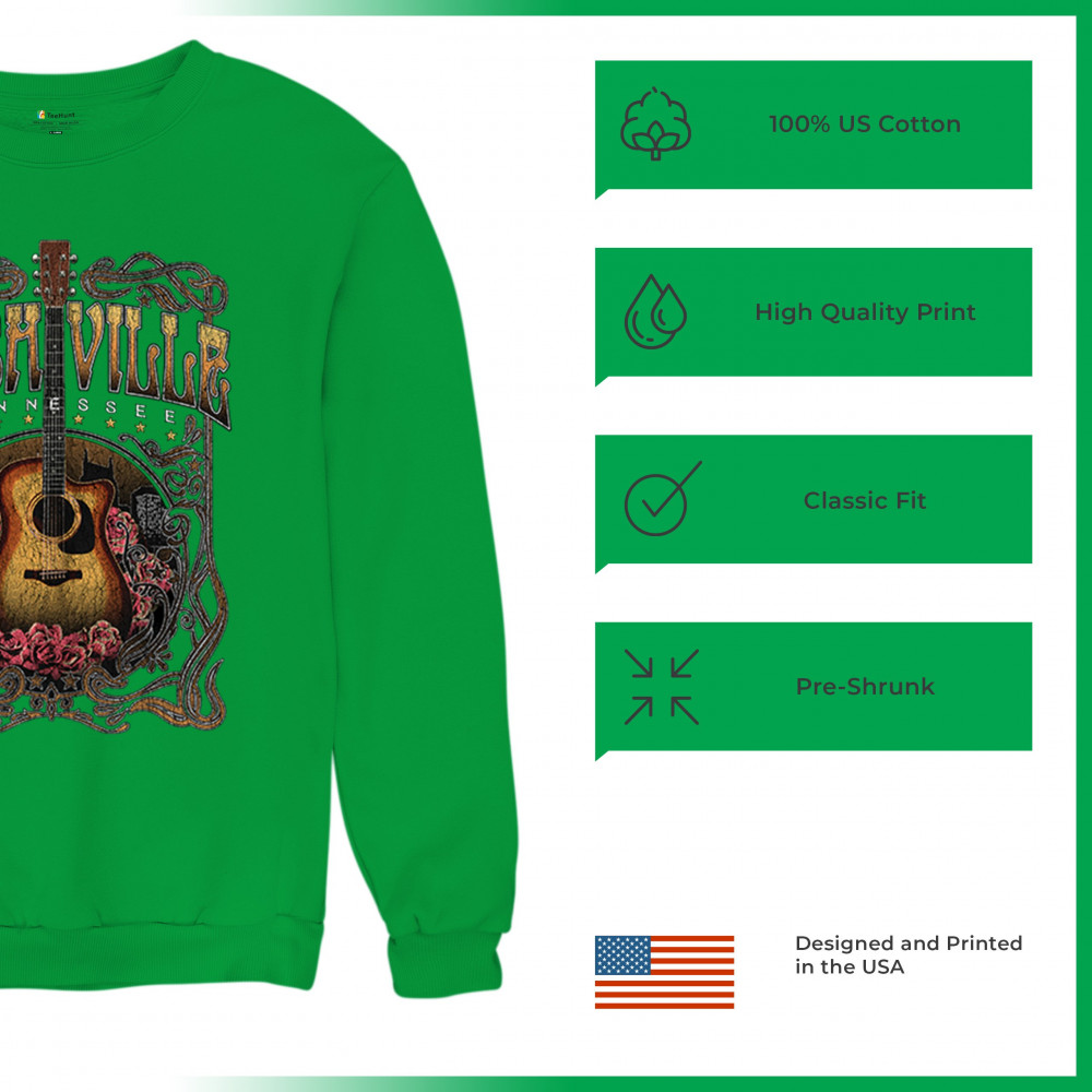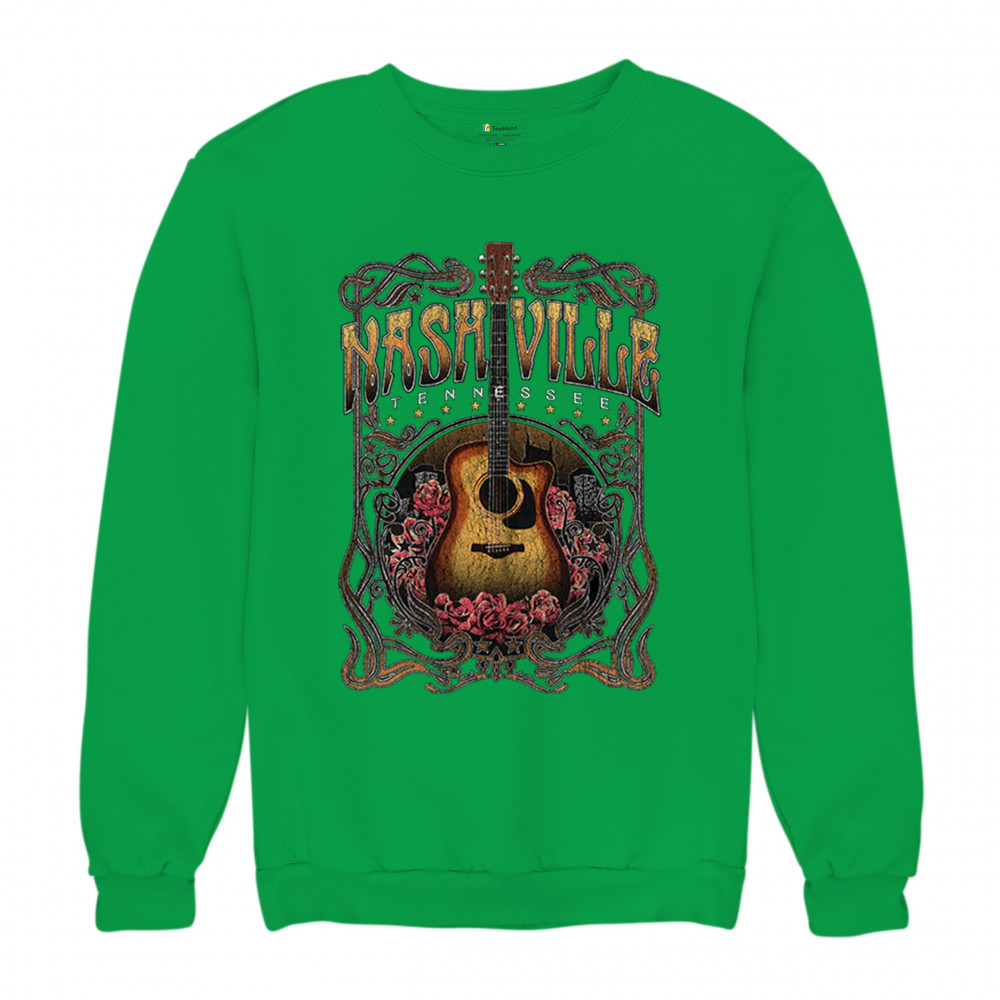 Vintage Nashville Tennessee design with rustic guitar and roses. Great for concerts, country music fans, road trips, and souvenir wear.