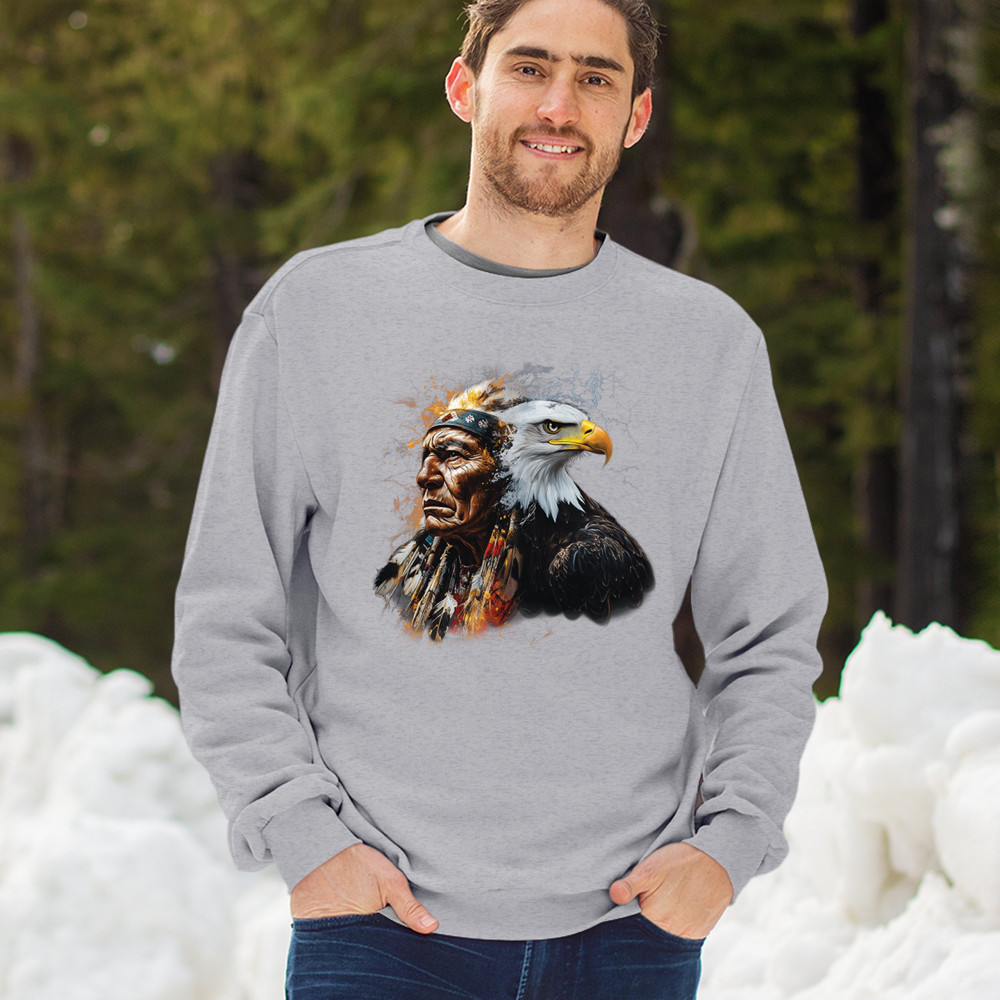Bold tribal totem design with Native chief, eagle, lightning, and fire. A fierce blend of spirit, power, and cultural pride in one image.