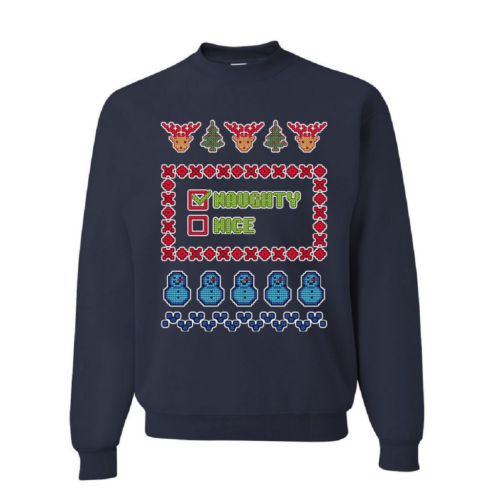 NAUGHTY OR NICE ugly sweater sweatshirt christmas xmas holiday list sweater navy blue