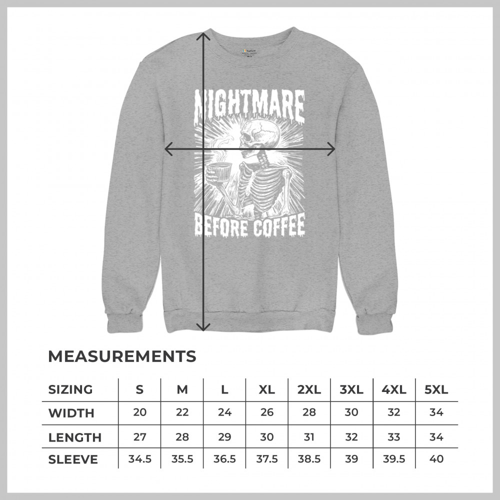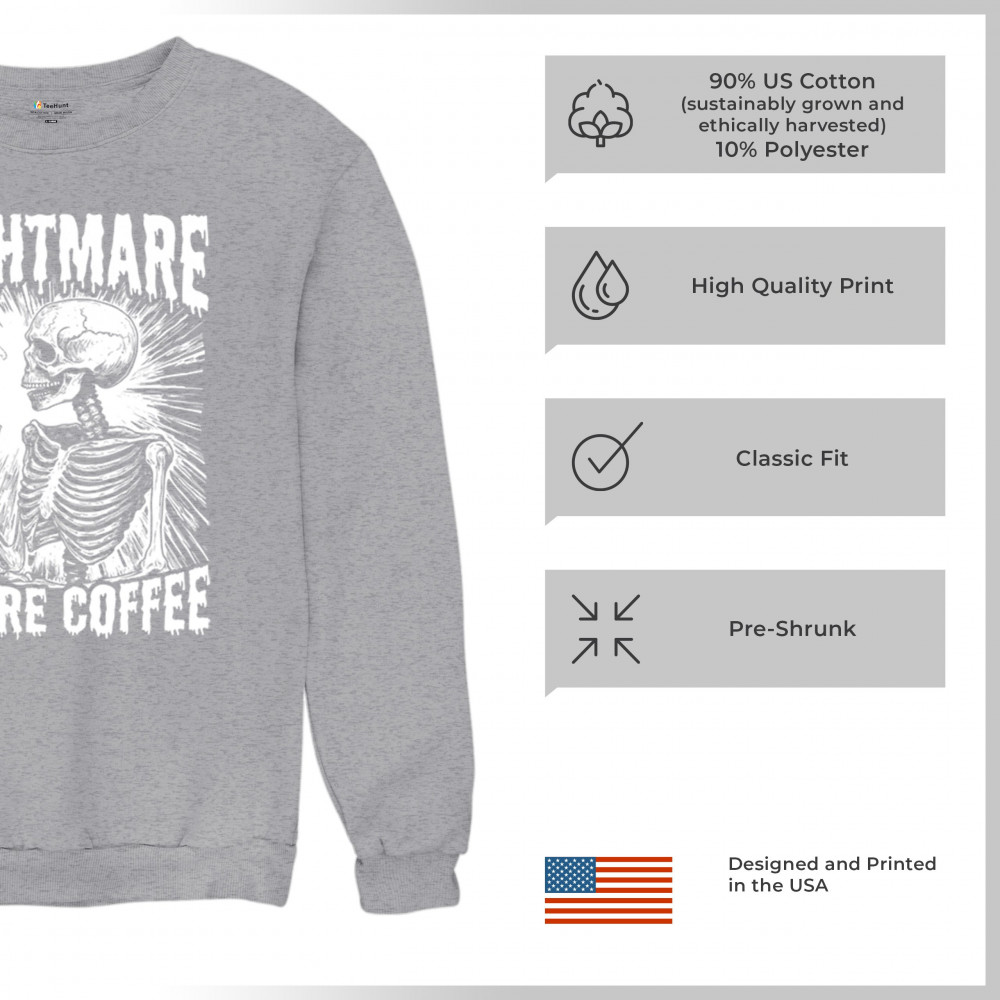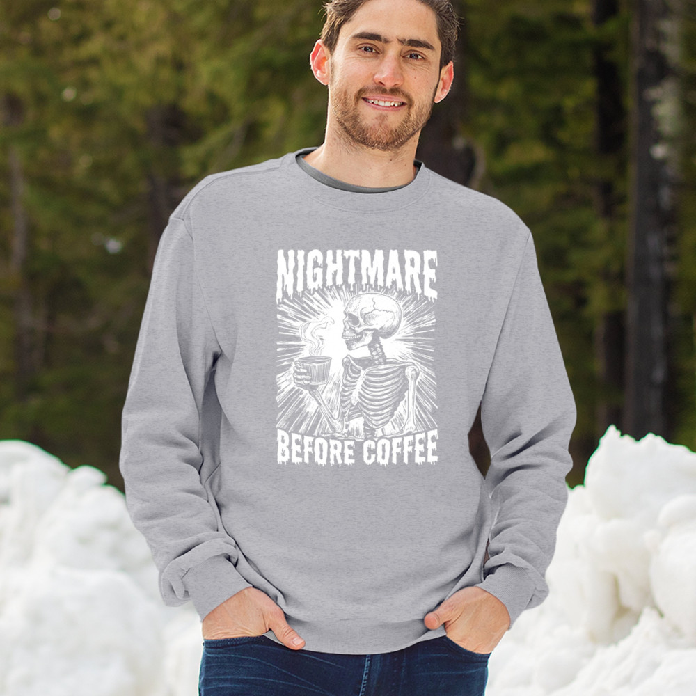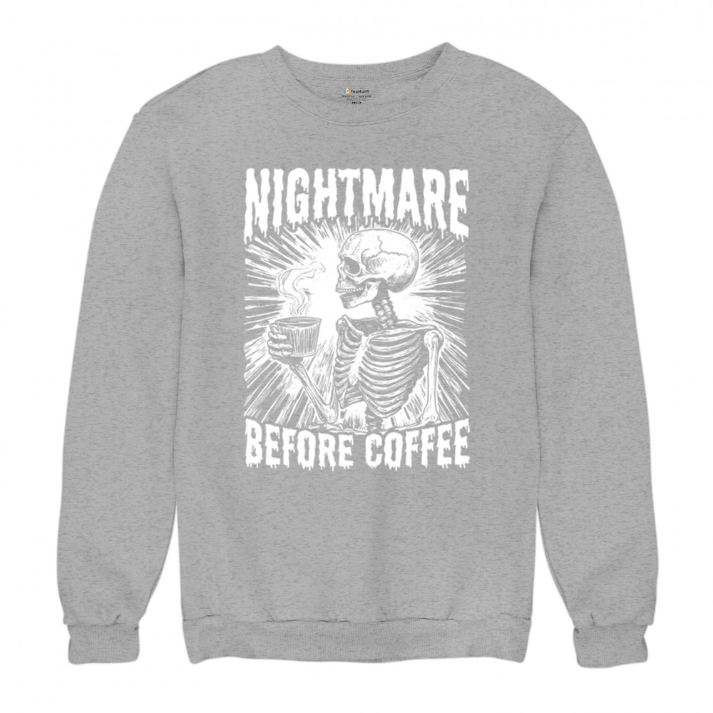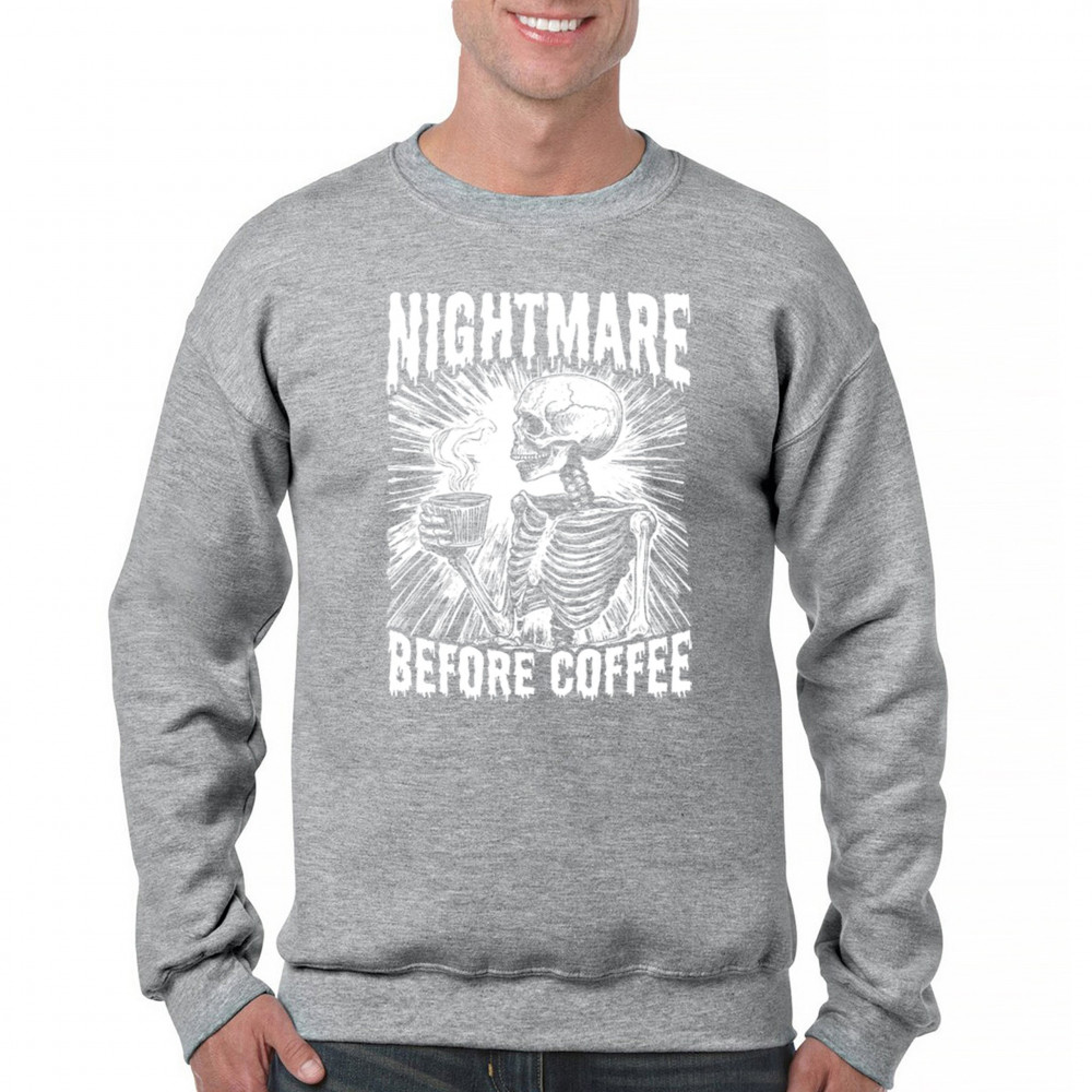 NIGHTMARE BEFORE COFFEE sweatshirt funny halloween skeleton skull fall crewneck gray