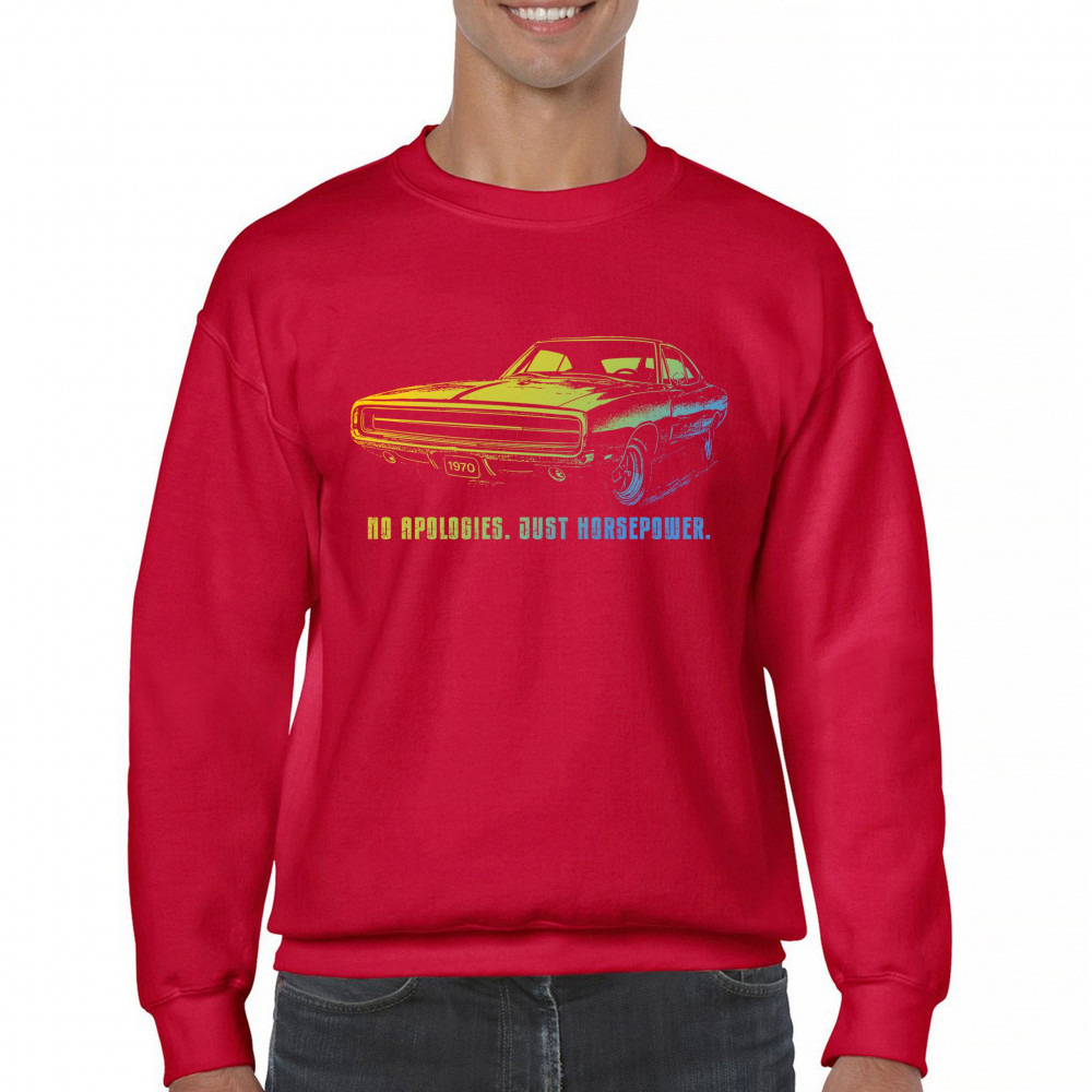 Bold 1970 muscle car design with gradient pop. No apologies, just horsepower—perfect for car shows, gearheads, and performance lovers.