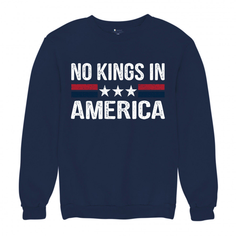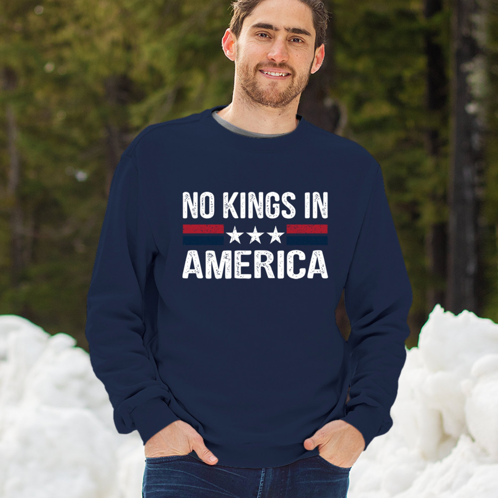 Bold No Kings in America patriotic design. Perfect for 4th of July, protests, civic pride, and freedom-loving Americans.