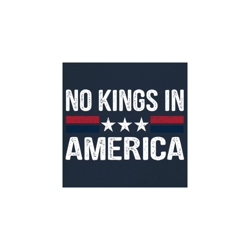 Show your patriotic spirit with the "No Kings in America" design—a bold declaration of freedom and civic pride. Featuring classic red, white, and blue tones, it's perfect for Fourth of July celebrations, political events, or history lovers. Celebrate democracy and independence with style and purpose.