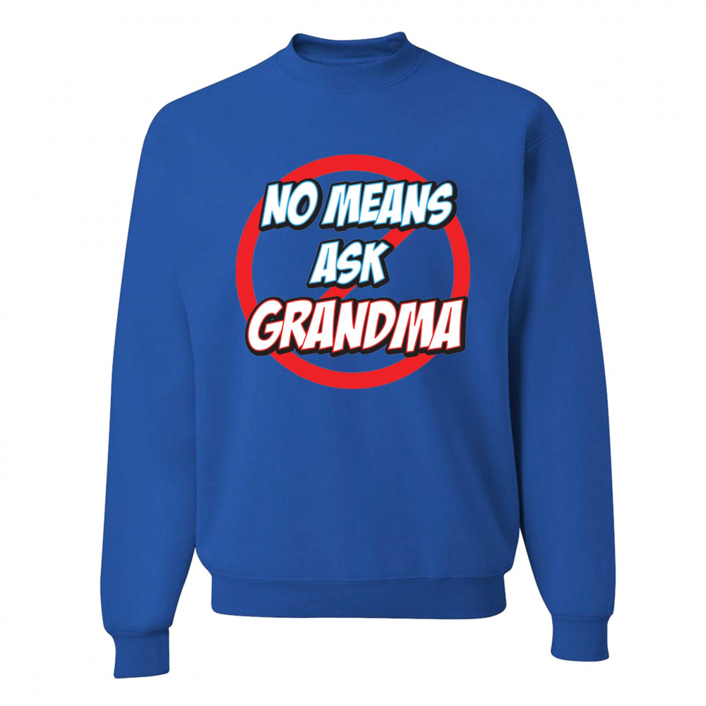NO MEANS ASK GRANDMA sweatshirt granny mother's day funny mimi nana crewneck royal blue