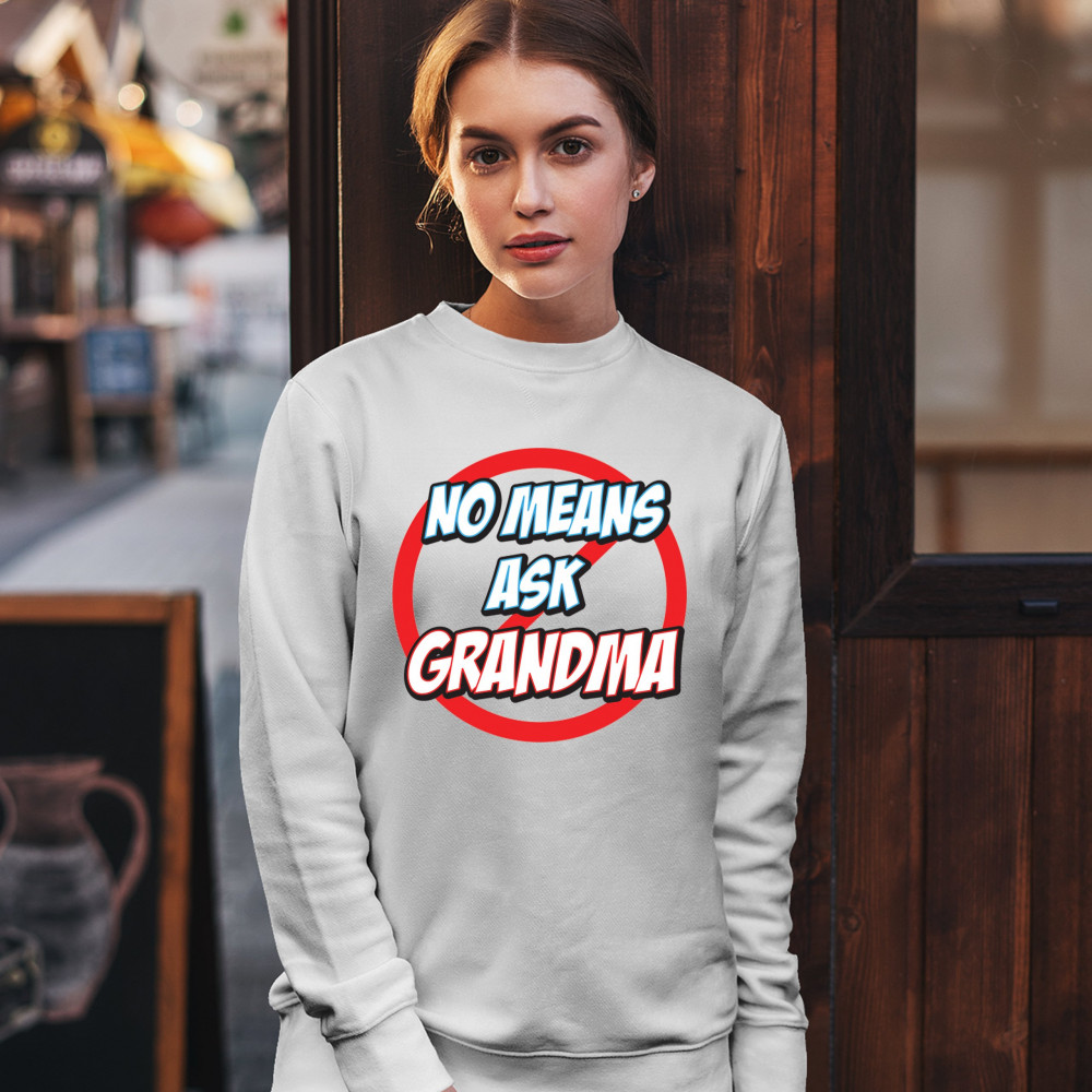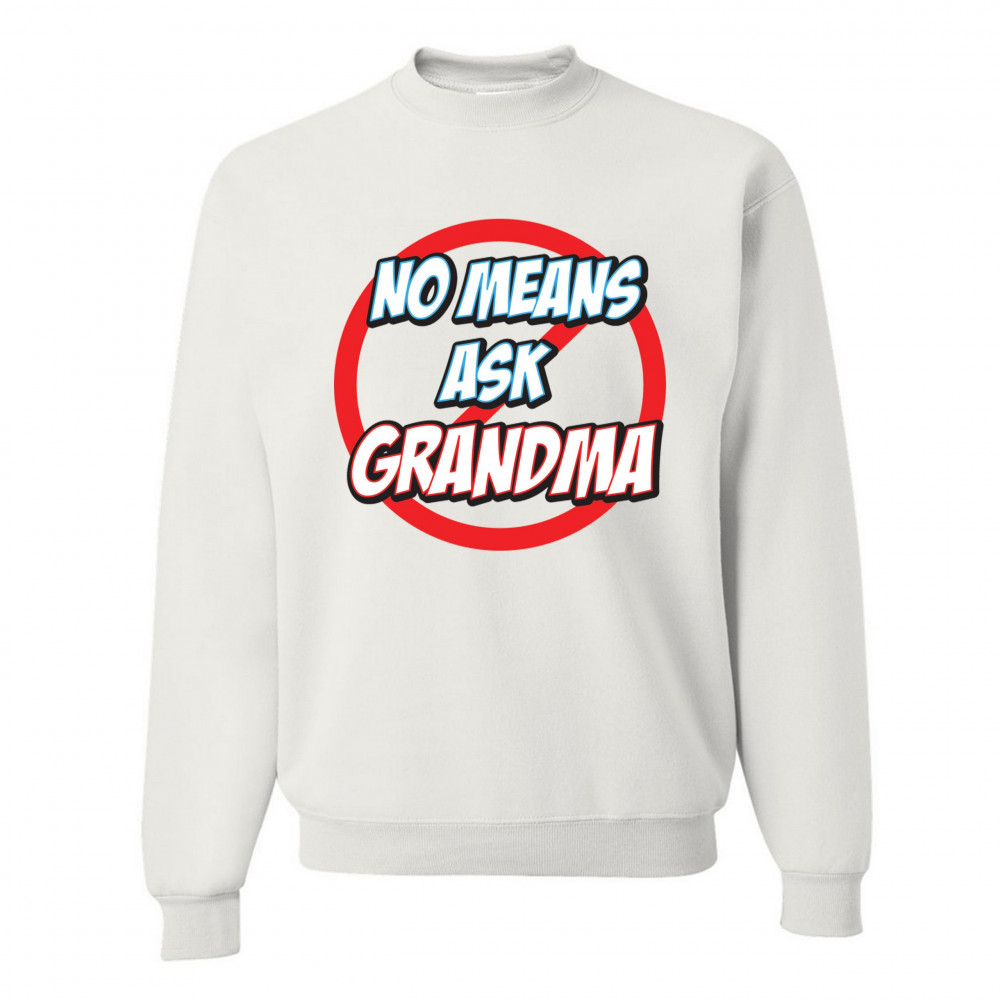 NO MEANS ASK GRANDMA sweatshirt granny mother's day funny mimi nana crewneck white
