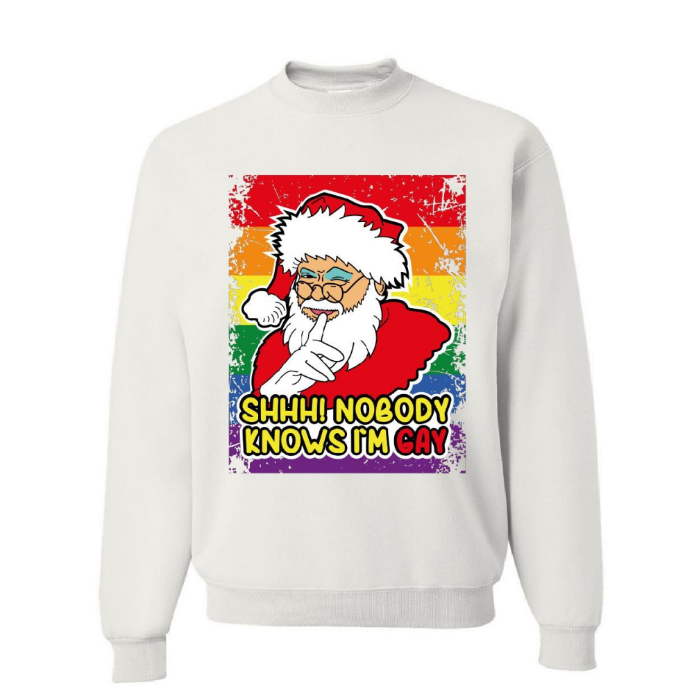 NOBODY KNOWS I'M GAY sweatshirt christmas santa lgbt xmas ho ho ho sweater white