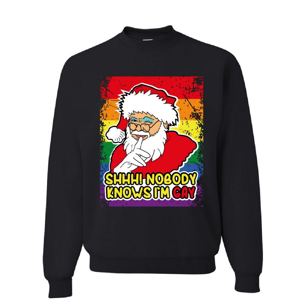 NOBODY KNOWS I'M GAY sweatshirt christmas santa lgbt xmas ho ho ho sweater black
