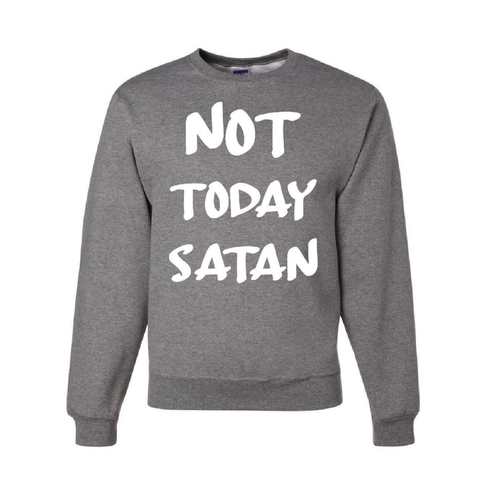 NOT TODAY SATAN sweatshirt religious funny jesus religion faith gray