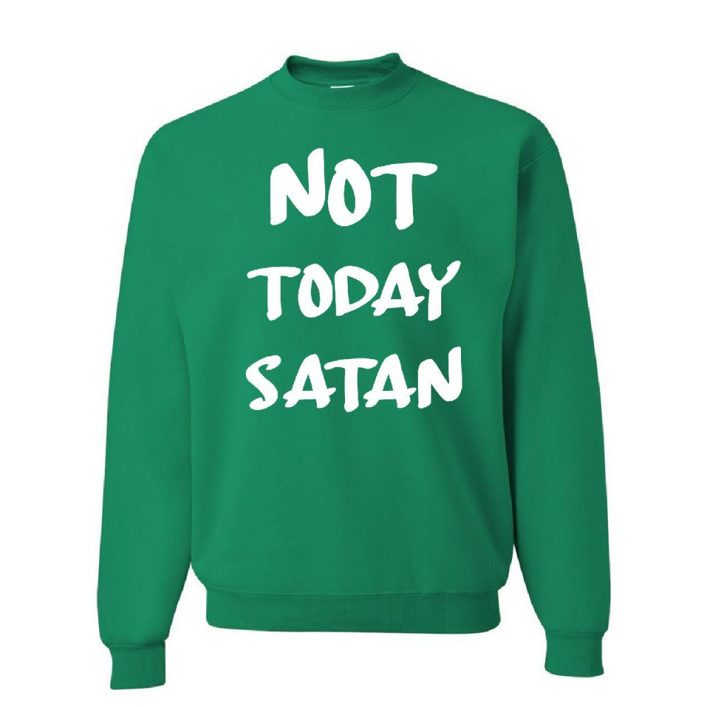 NOT TODAY SATAN sweatshirt religious funny jesus religion faith green