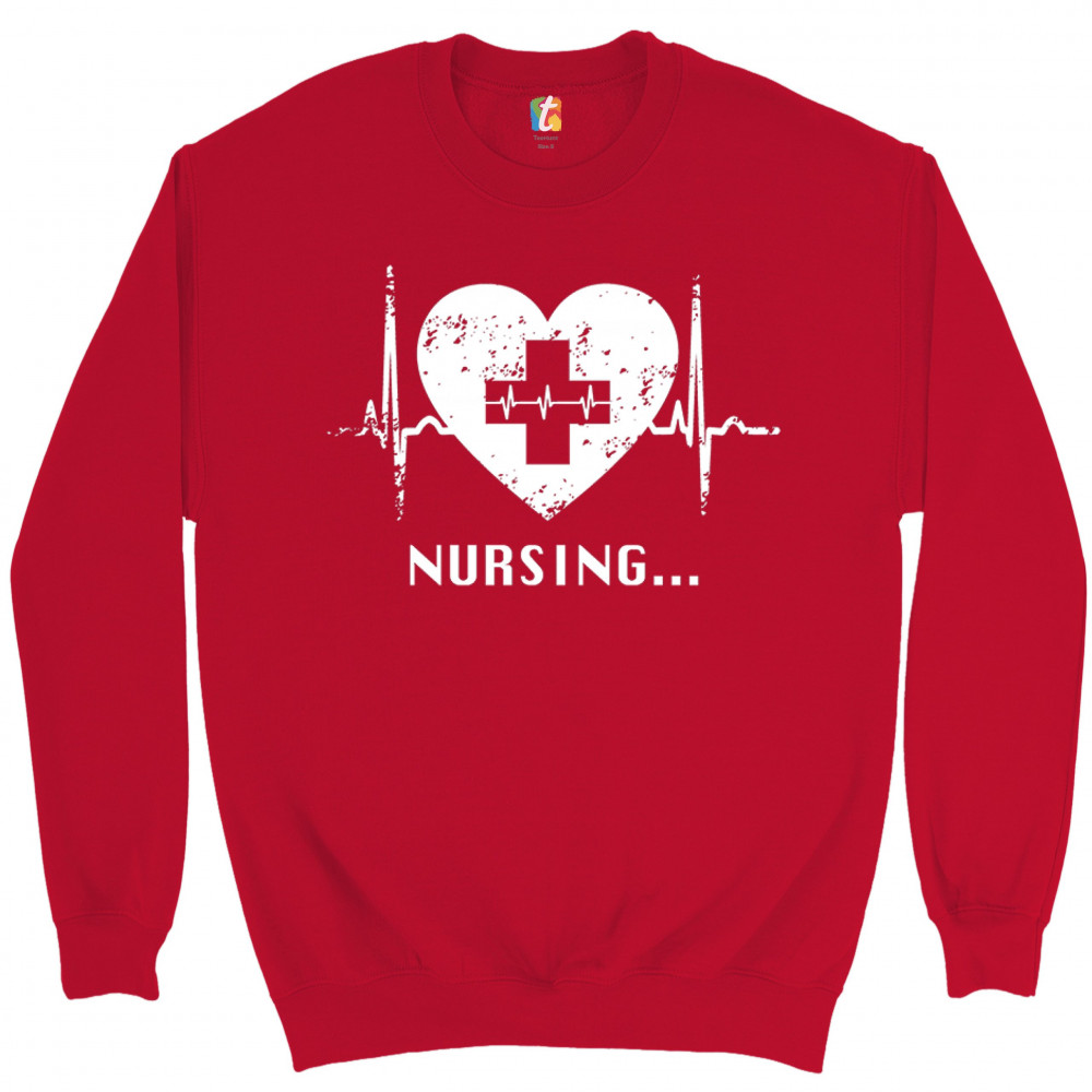 A print featuring a heart with a cross in it's center and saying "Nursing...". Inside of the cross and to the sides of the heart there is a heartbeat graph. A great choice as a gift for a registered nurse, who is busy everyday saving people's lives.