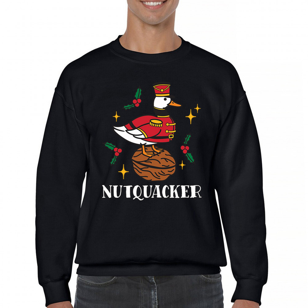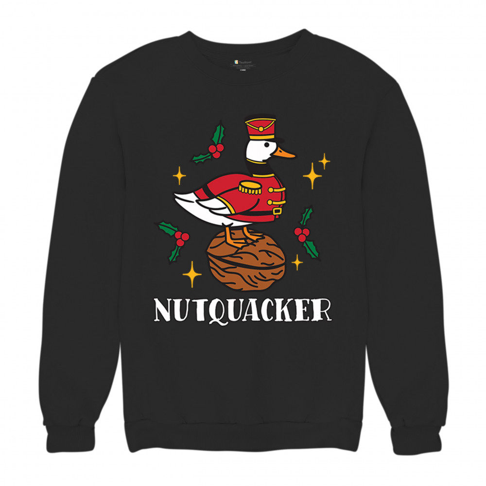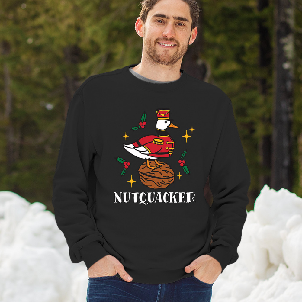 Funny Nutquacker Christmas design featuring a festive duck, holiday humor, and seasonal charm. Great for parties, gifts, and cheerful holiday style.