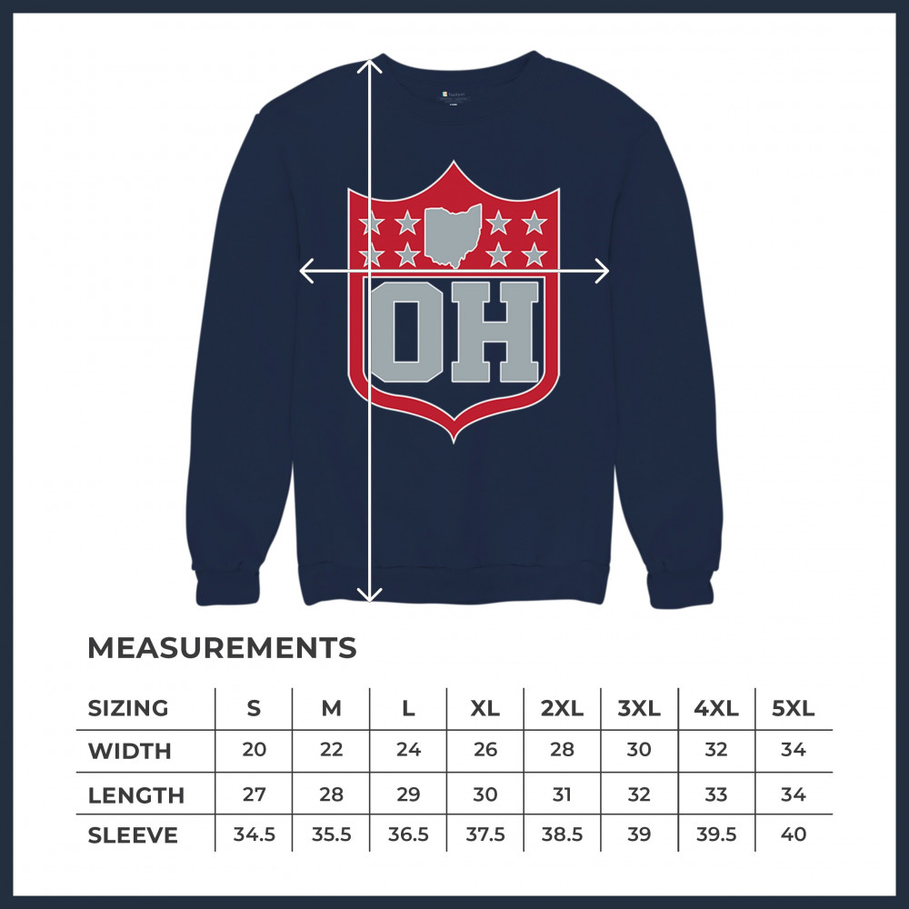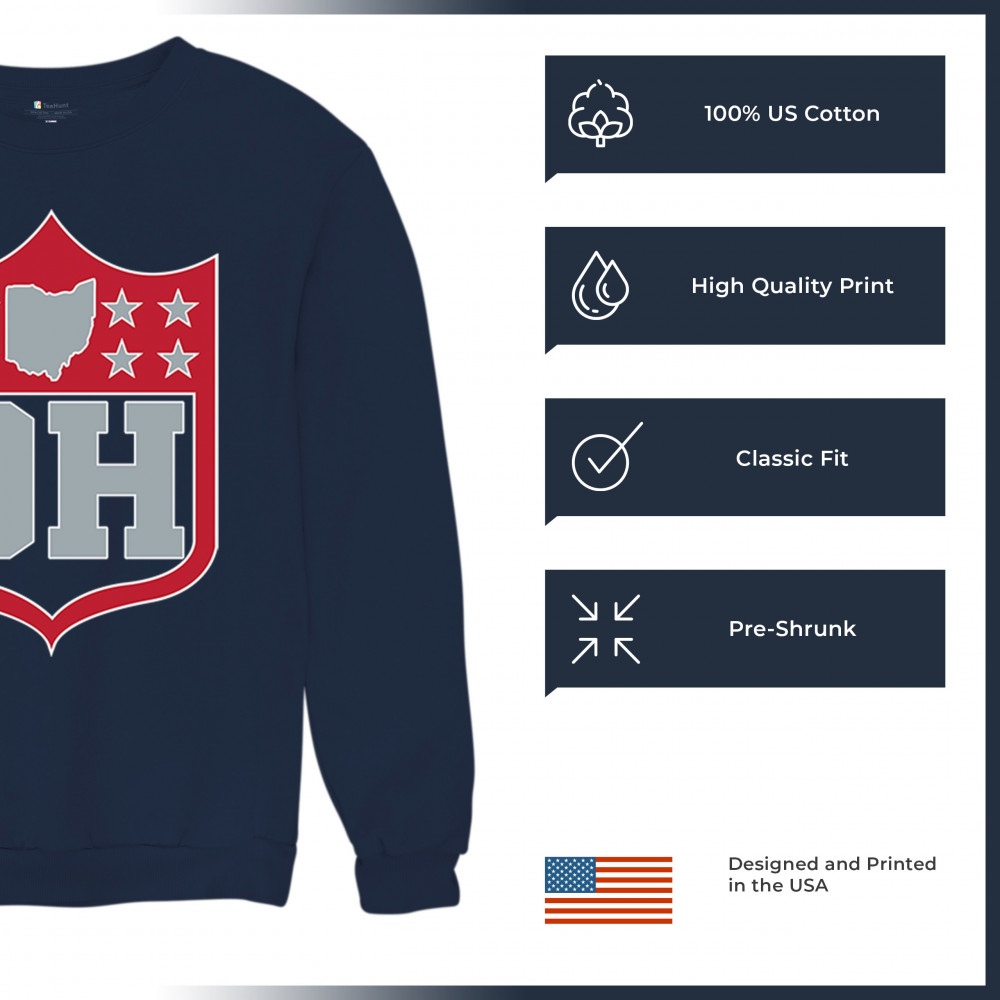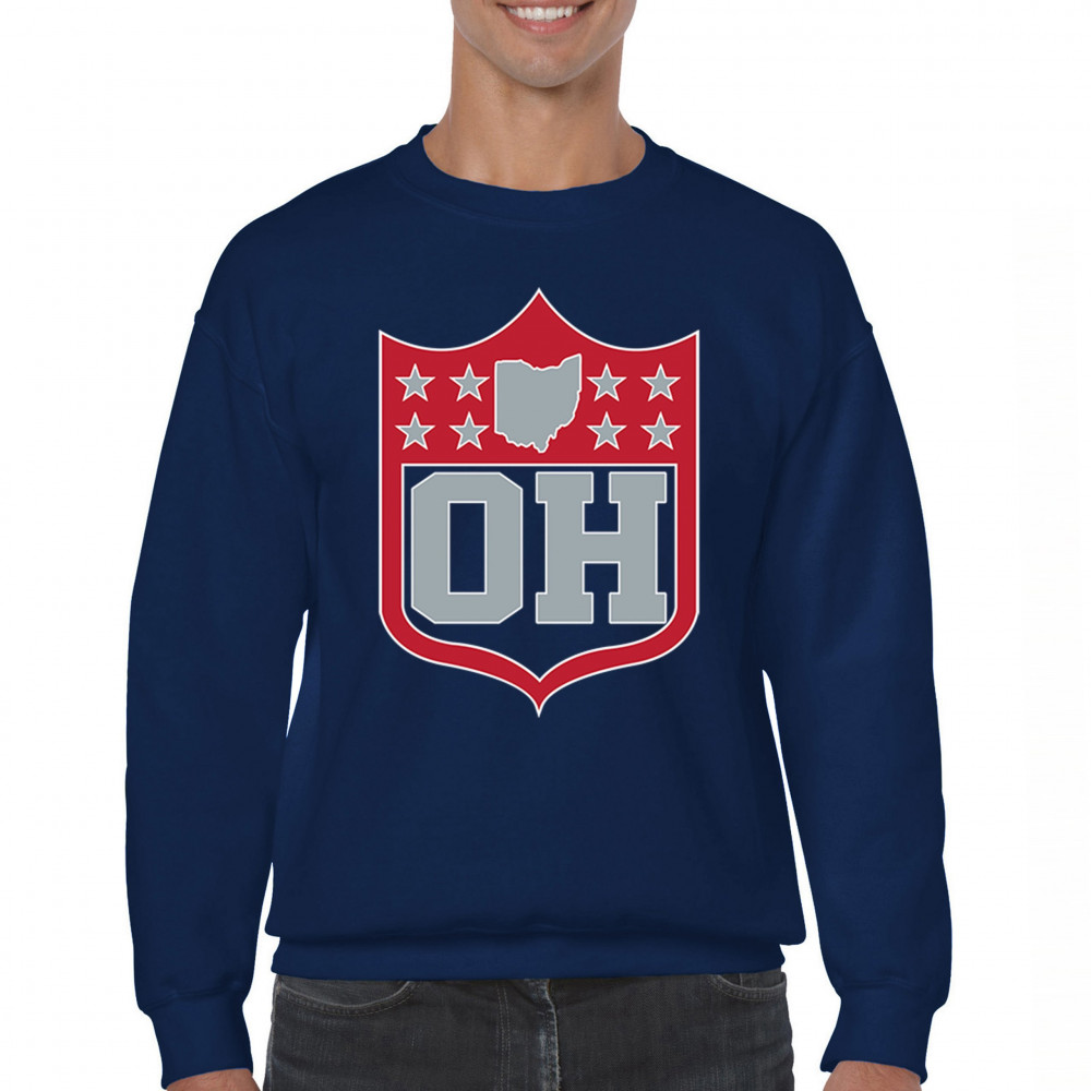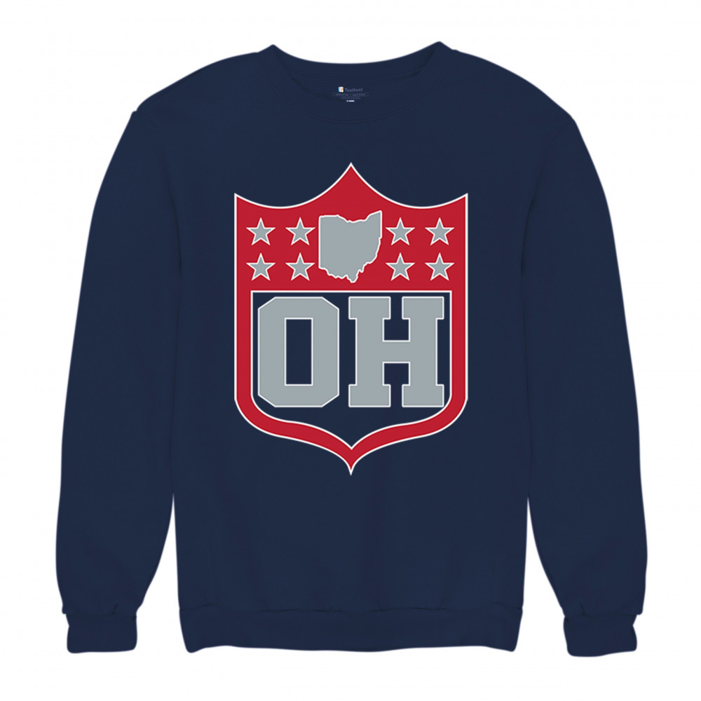 OHIO SHIELD crewneck sweatshirt football fan game night tailgate oh underdog navy blue