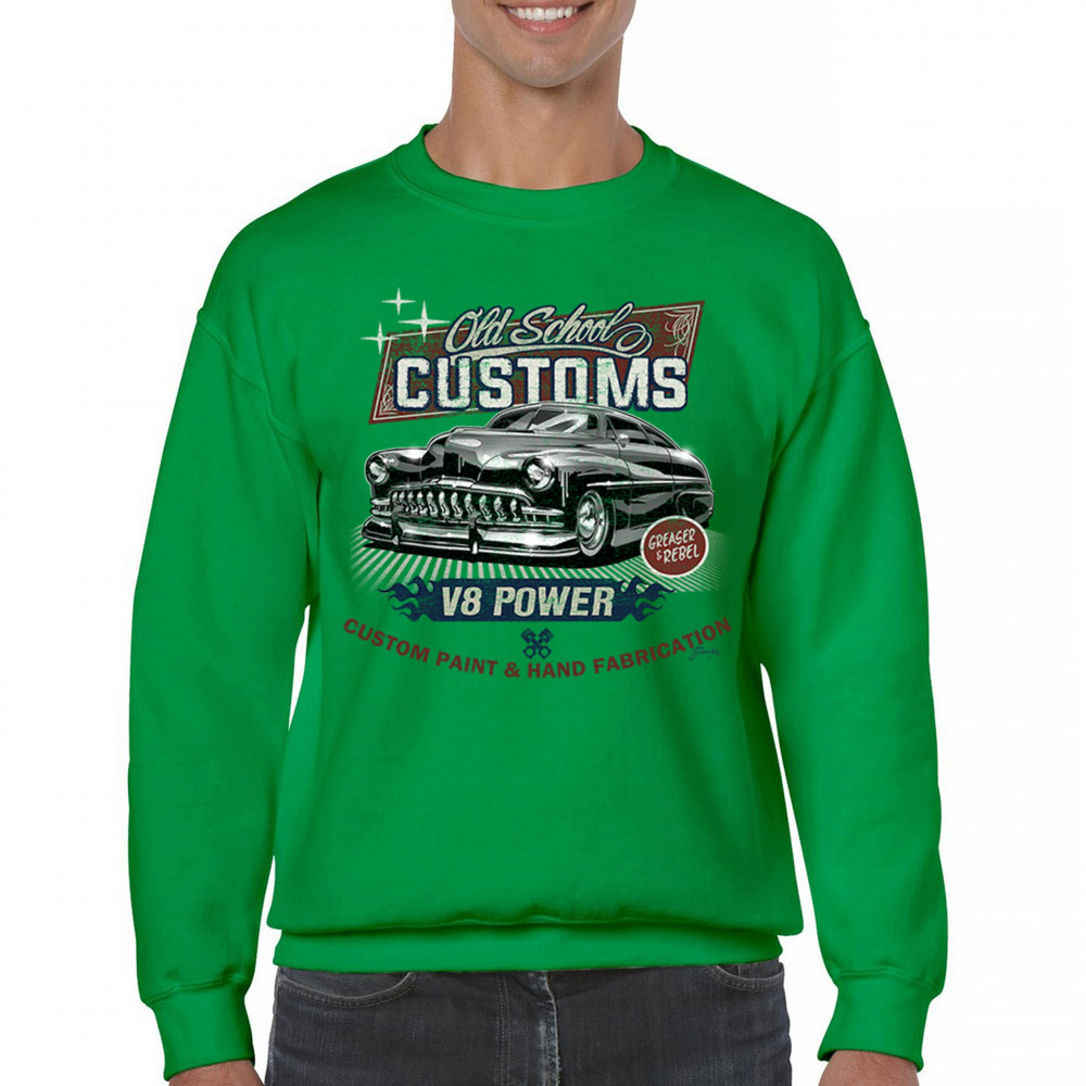 Celebrate classic automotive culture with our "Old School Customs" t-shirt, featuring a V8 power design. Perfect for car enthusiasts and fans of vintage rides.