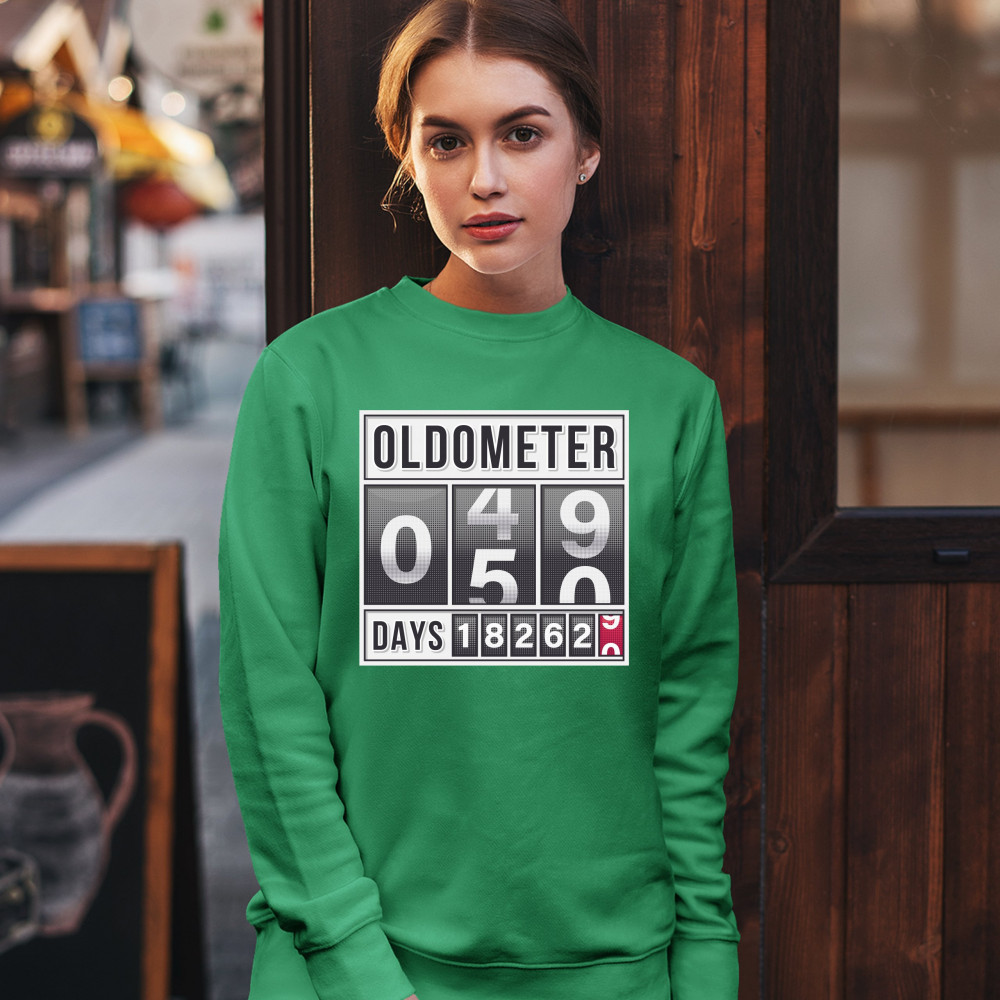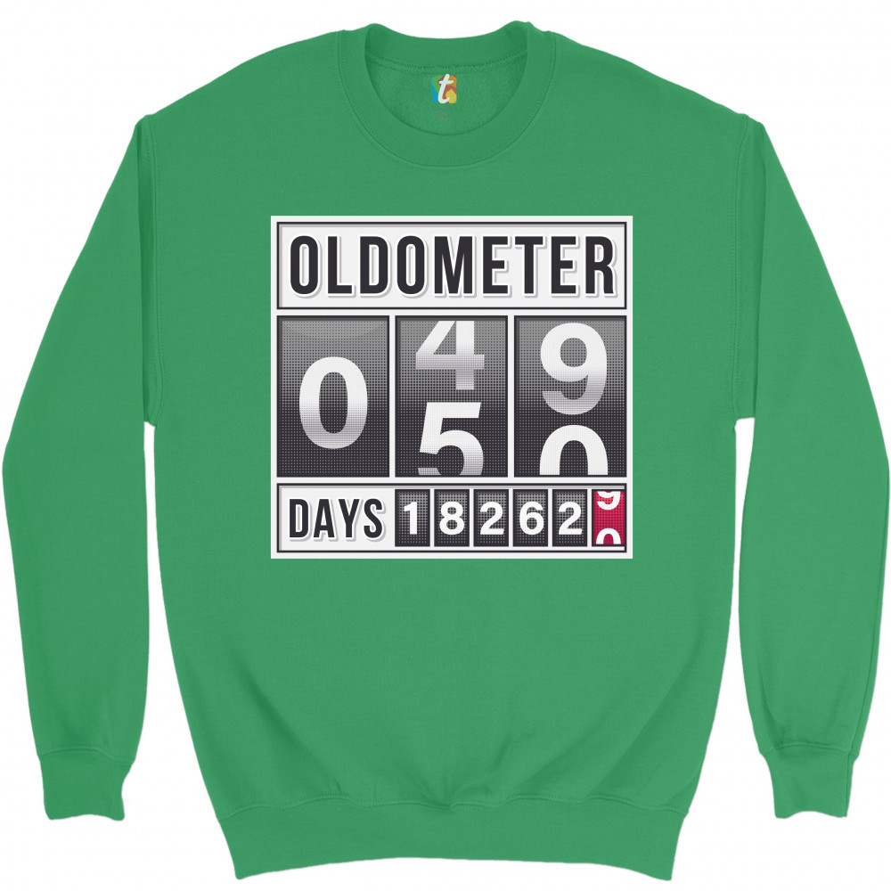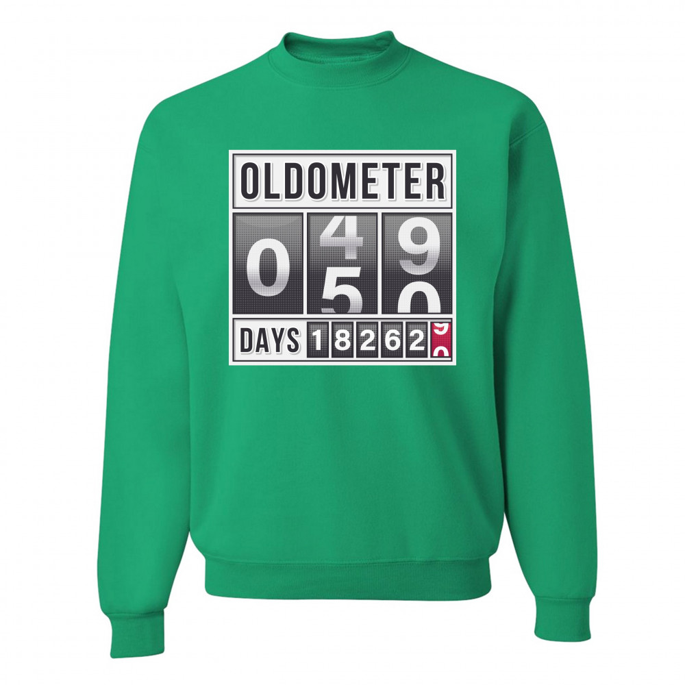 OLDOMETER 49-50 sweatshirt 50th anniversary 50 af funny odometer crewneck green