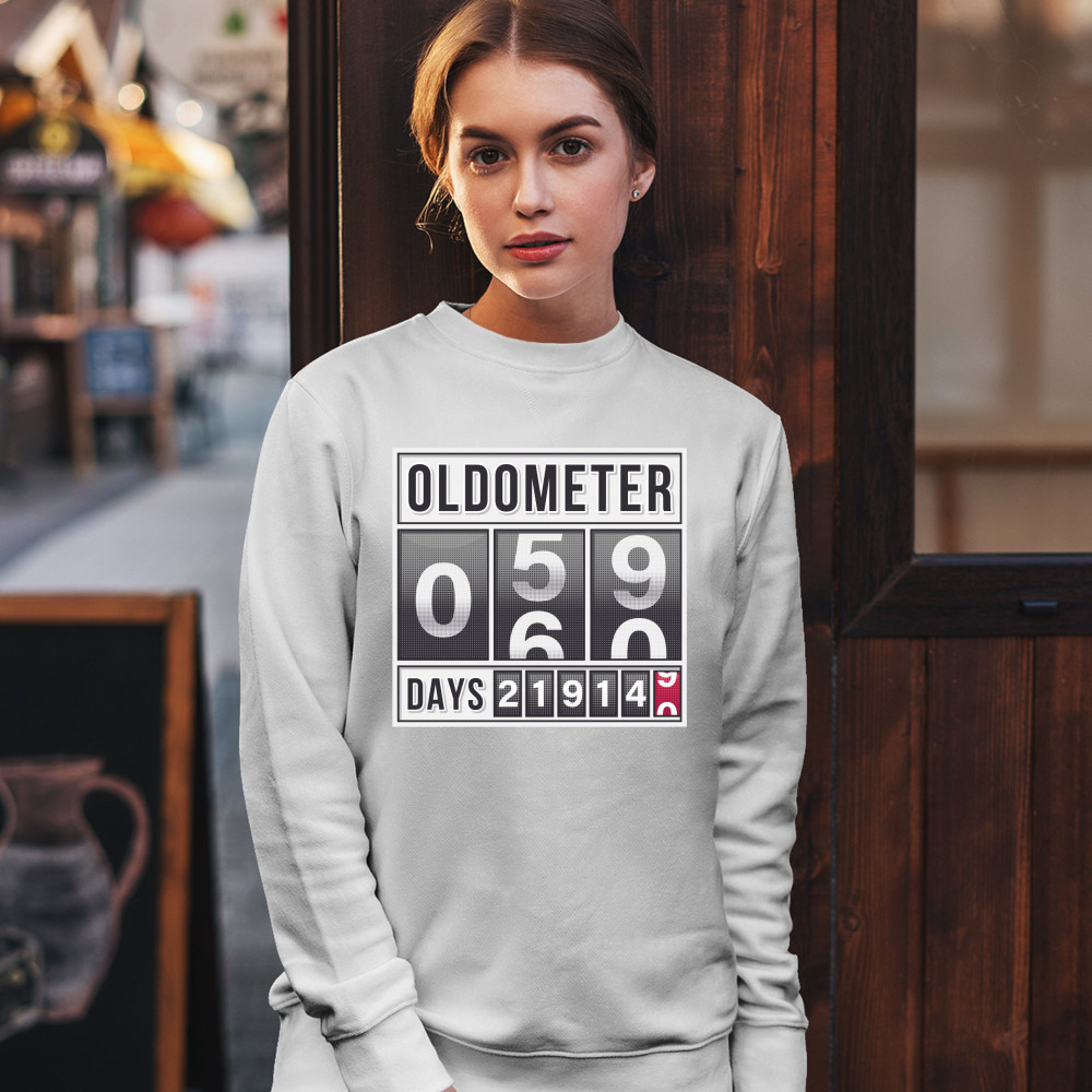 OLDOMETER 59-60 sweatshirt old lives matter funny odometer 60 af crewneck white