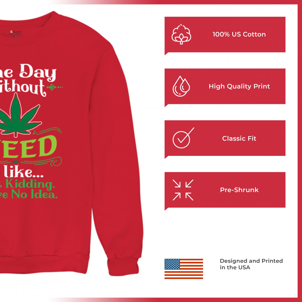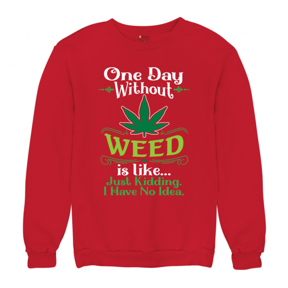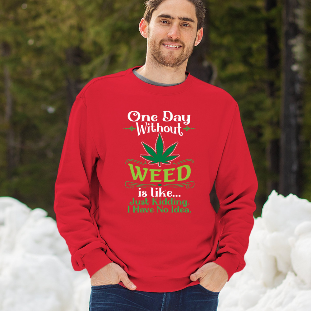Express your love for Mary Jane and your sense of humor with our "One Day Without Weed" design. Featuring a bold cannabis leaf and a playful, witty message, this design is perfect for those who enjoy the chill vibes of cannabis culture. Ideal for relaxing with your best buds, making a statement about legalization, or simply adding some fun to your wardrobe. Embrace the stoned humor and show off your relaxed, trippy style with this unique design.
