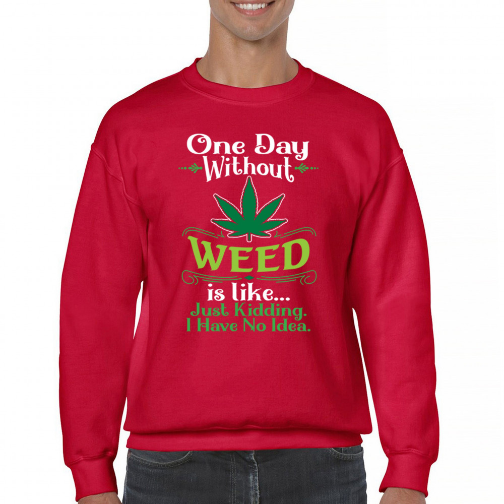 Humorous "One Day Without Weed" design with a bold cannabis leaf. Perfect for fans of Mary Jane, stoned humor, and relaxed, trippy style. Ideal for chill vibes.