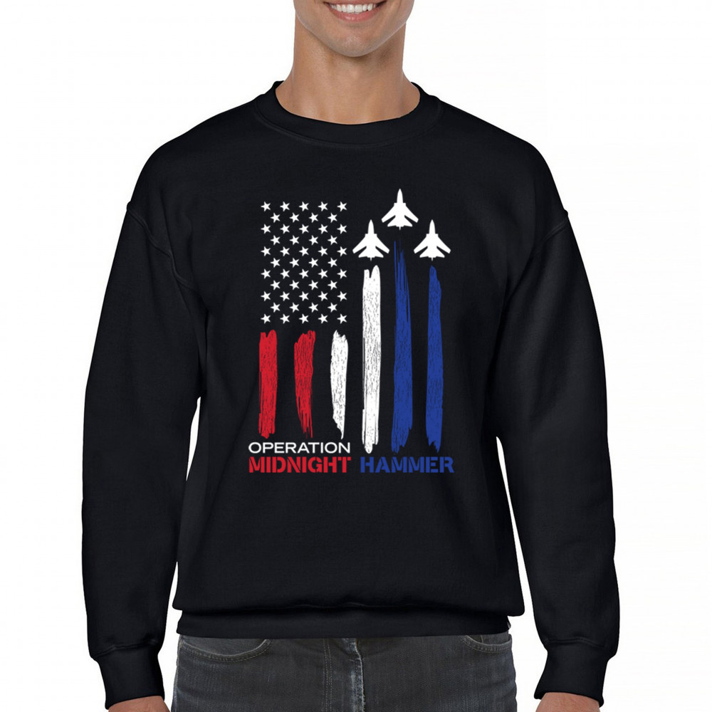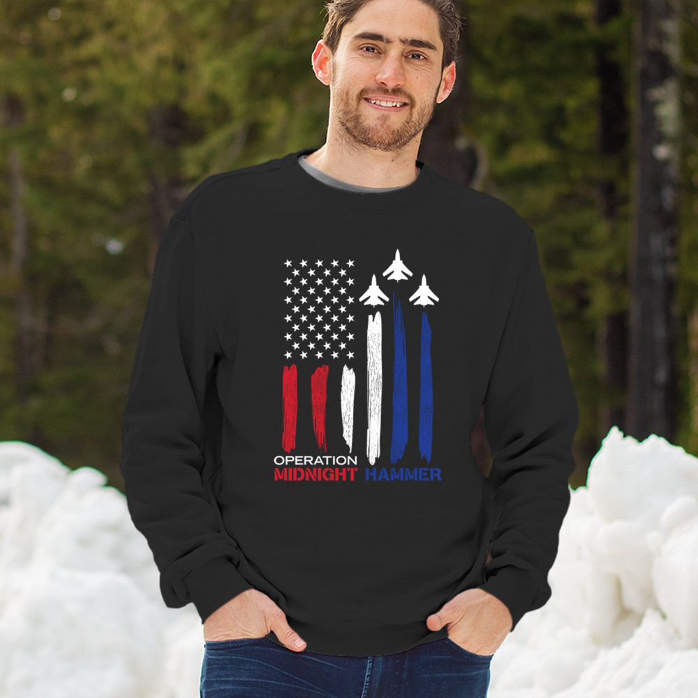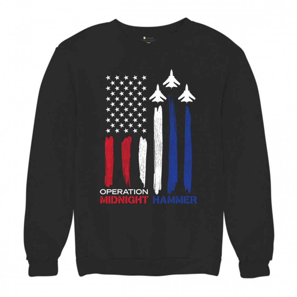 OPERATION MIDNIGHT HAMMER crewneck sweatshirt american flag gbu 57 president black