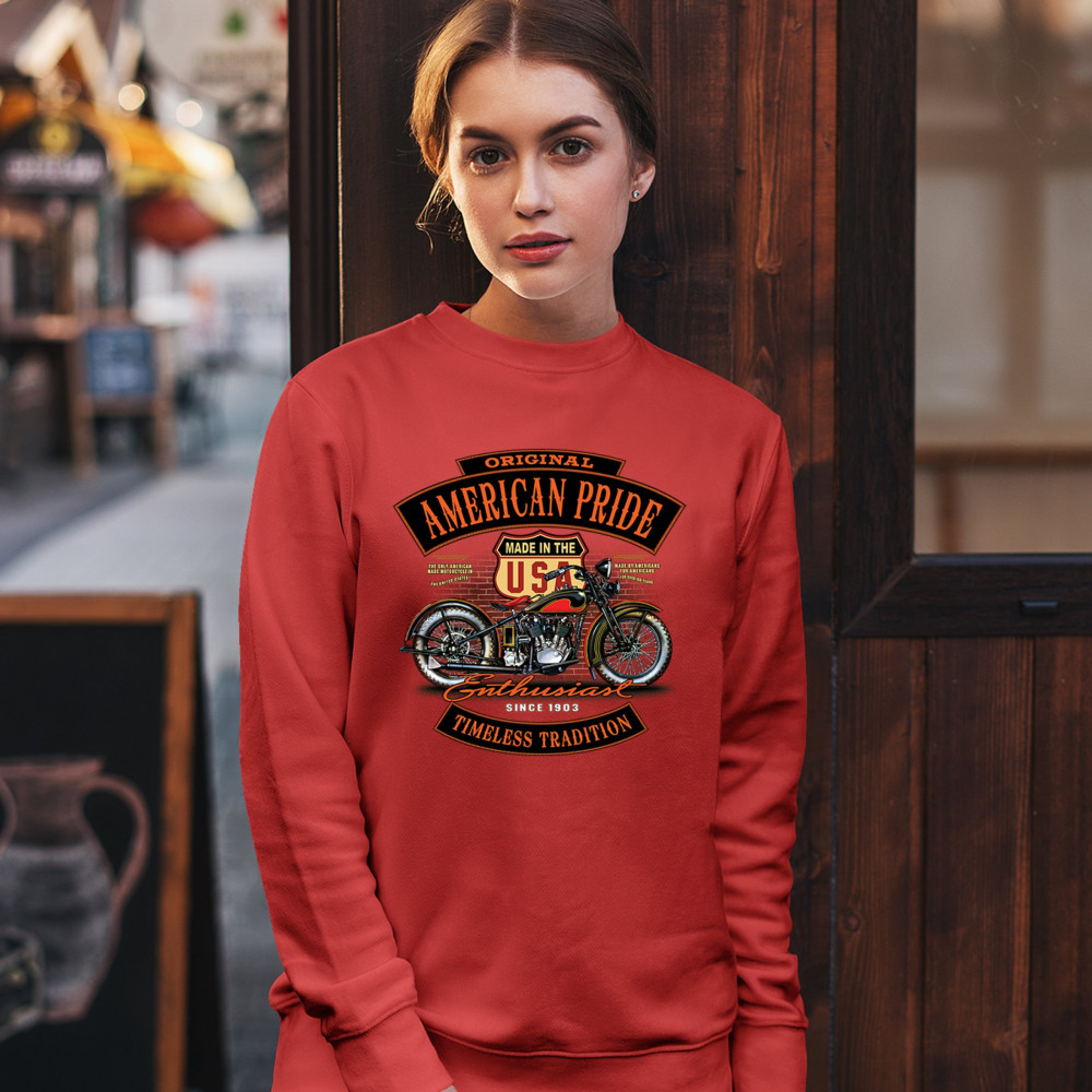ORIGINAL AMERICAN PRIDE sweatshirt biker chopper motorcycle enthusiast crewneck red