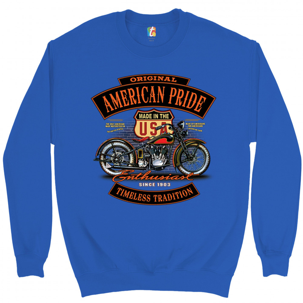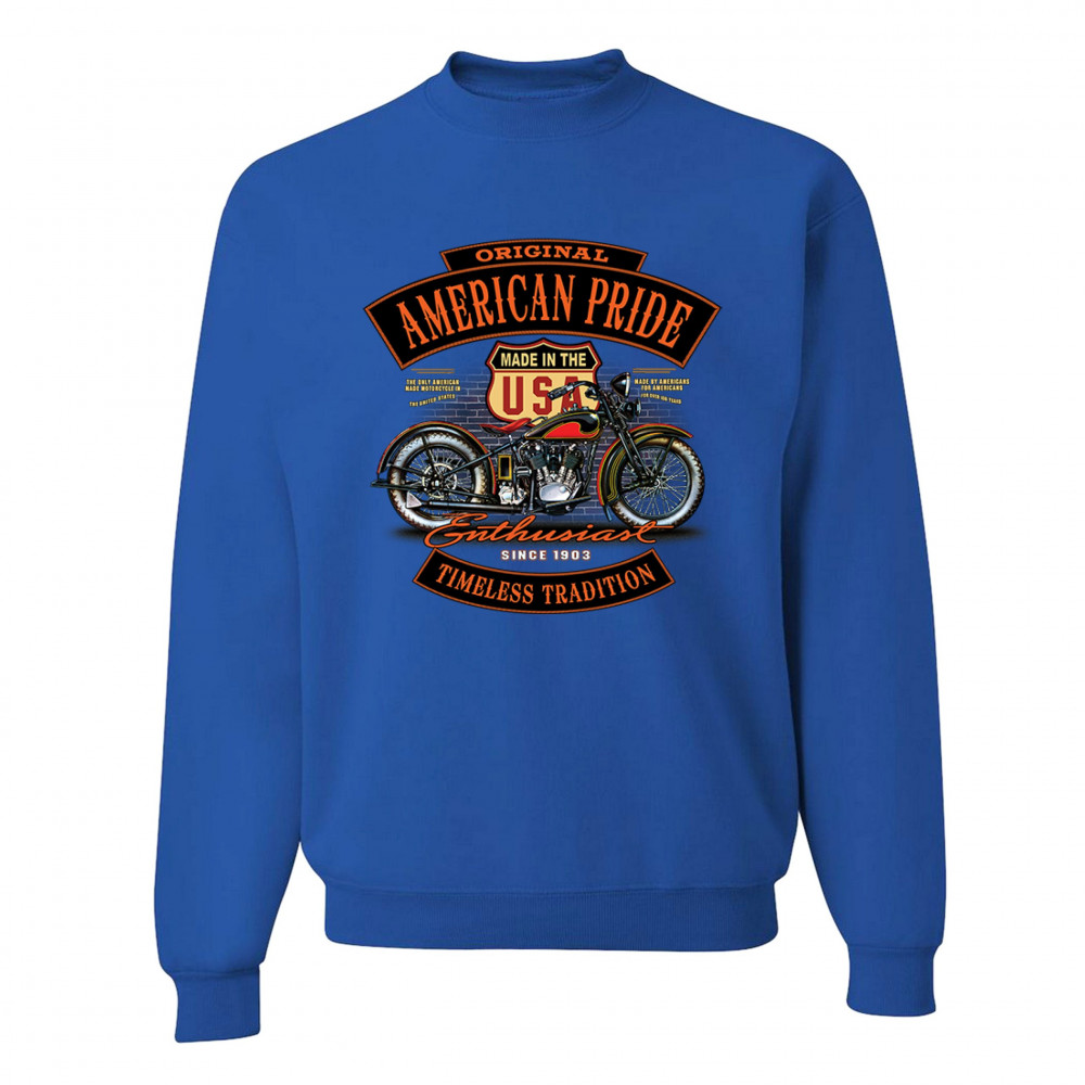 ORIGINAL AMERICAN PRIDE sweatshirt biker chopper motorcycle enthusiast crewneck royal blue