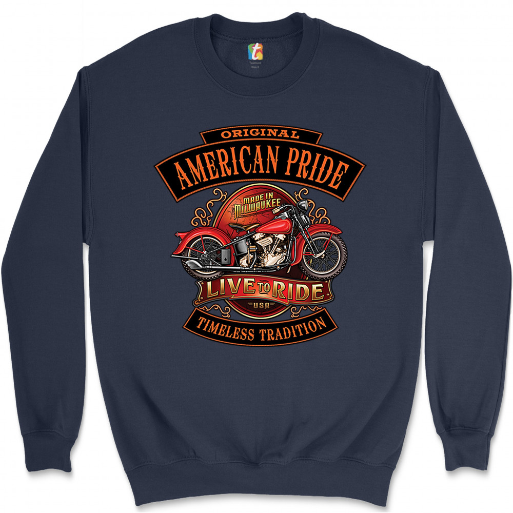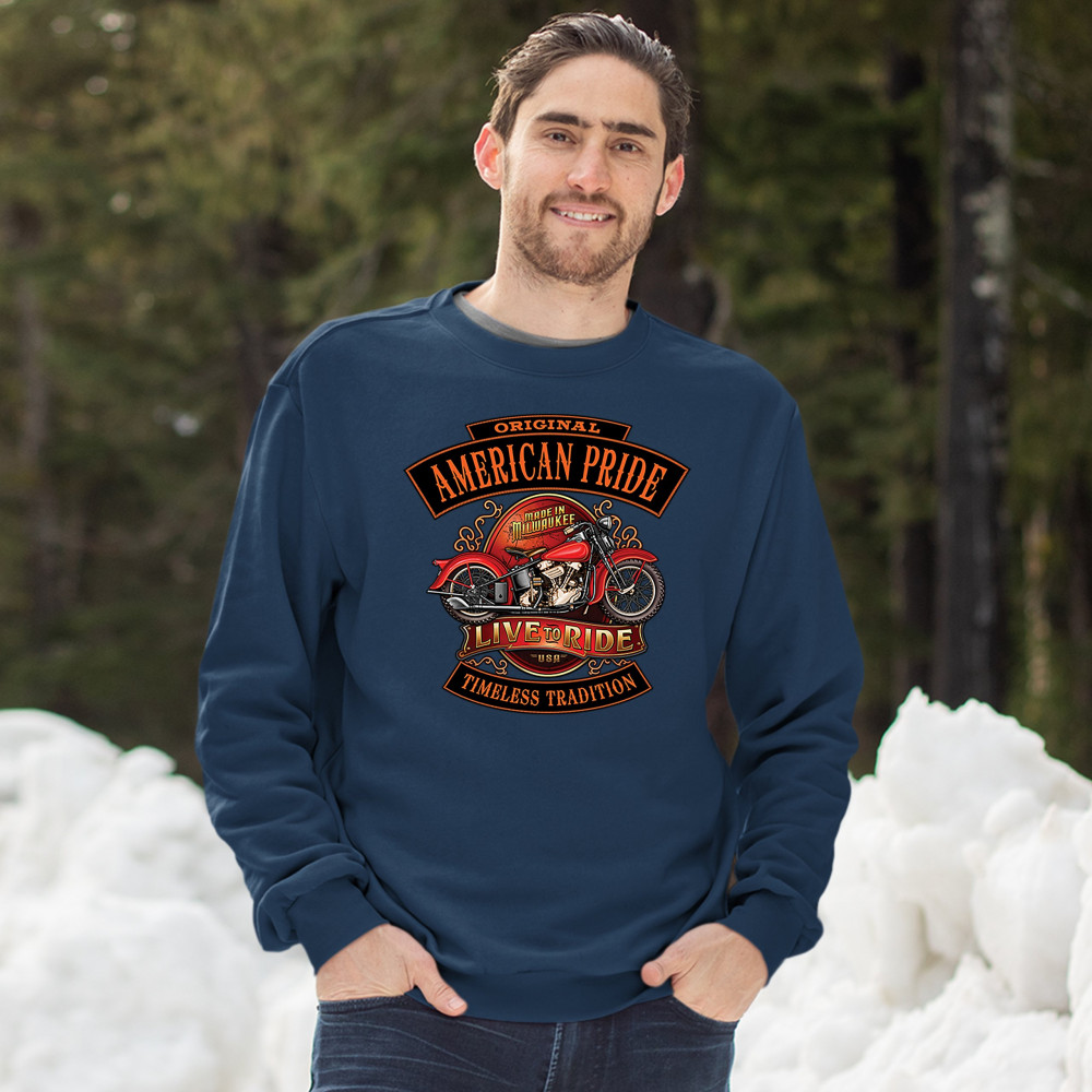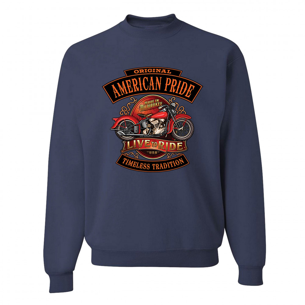 ORIGINAL AMERICAN PRIDE sweatshirt live to ride timeless tradition crewneck navy blue